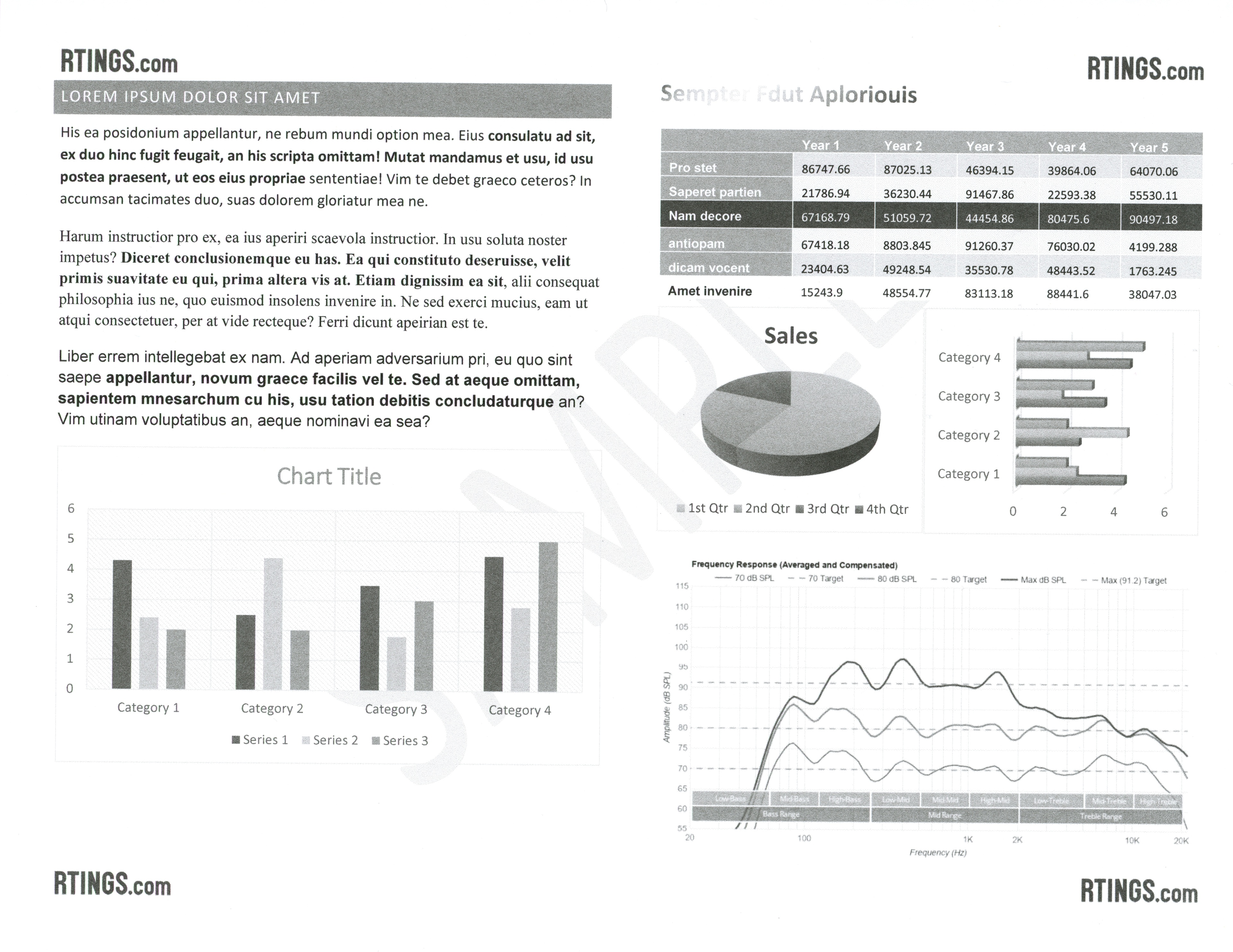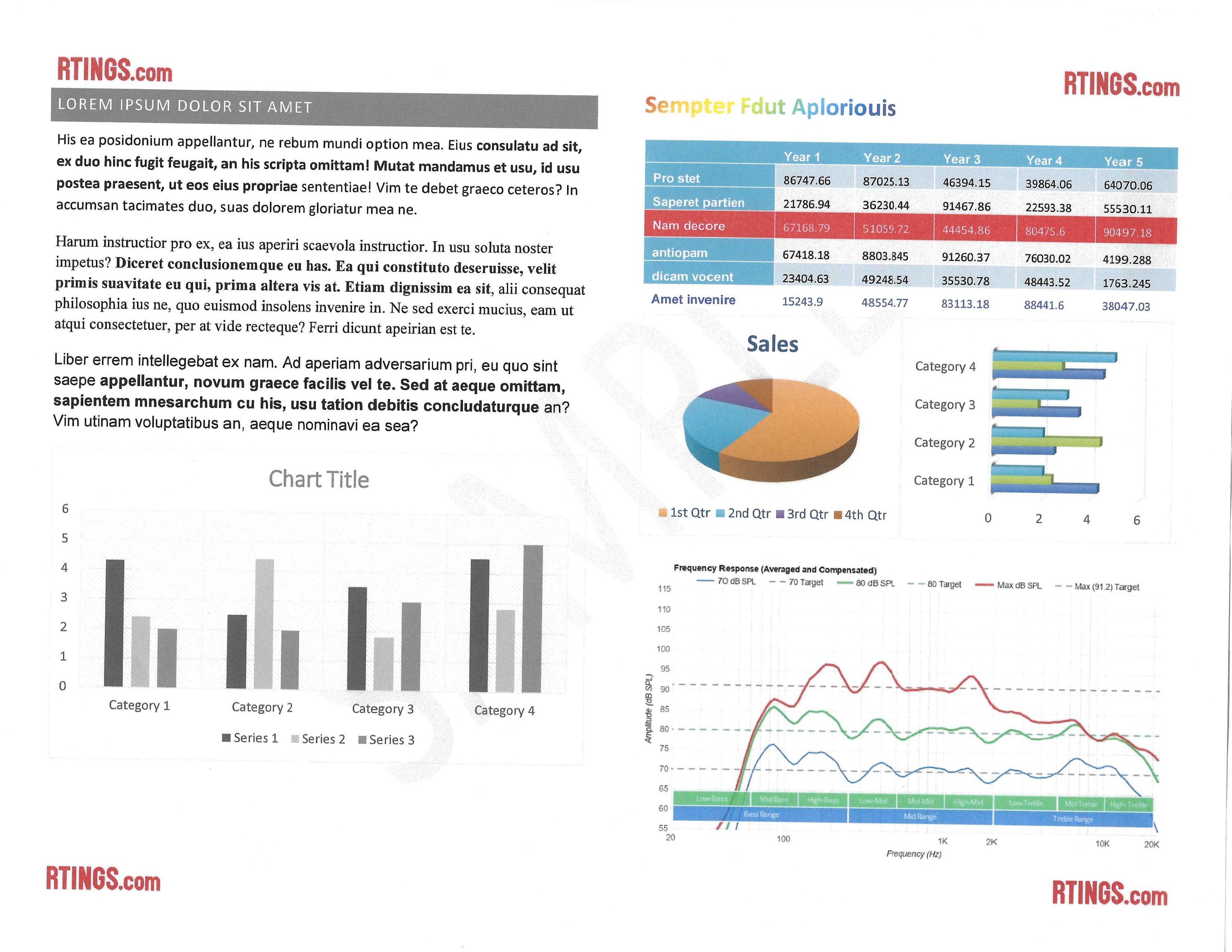 The print quality of color documents is excellent. Text looks clear, and colors look well-saturated. Fine elements, like lines in a graph, are present, albeit slightly faint. Printing in High Quality mode improves text clarity a bit and makes colored areas look more filled out.