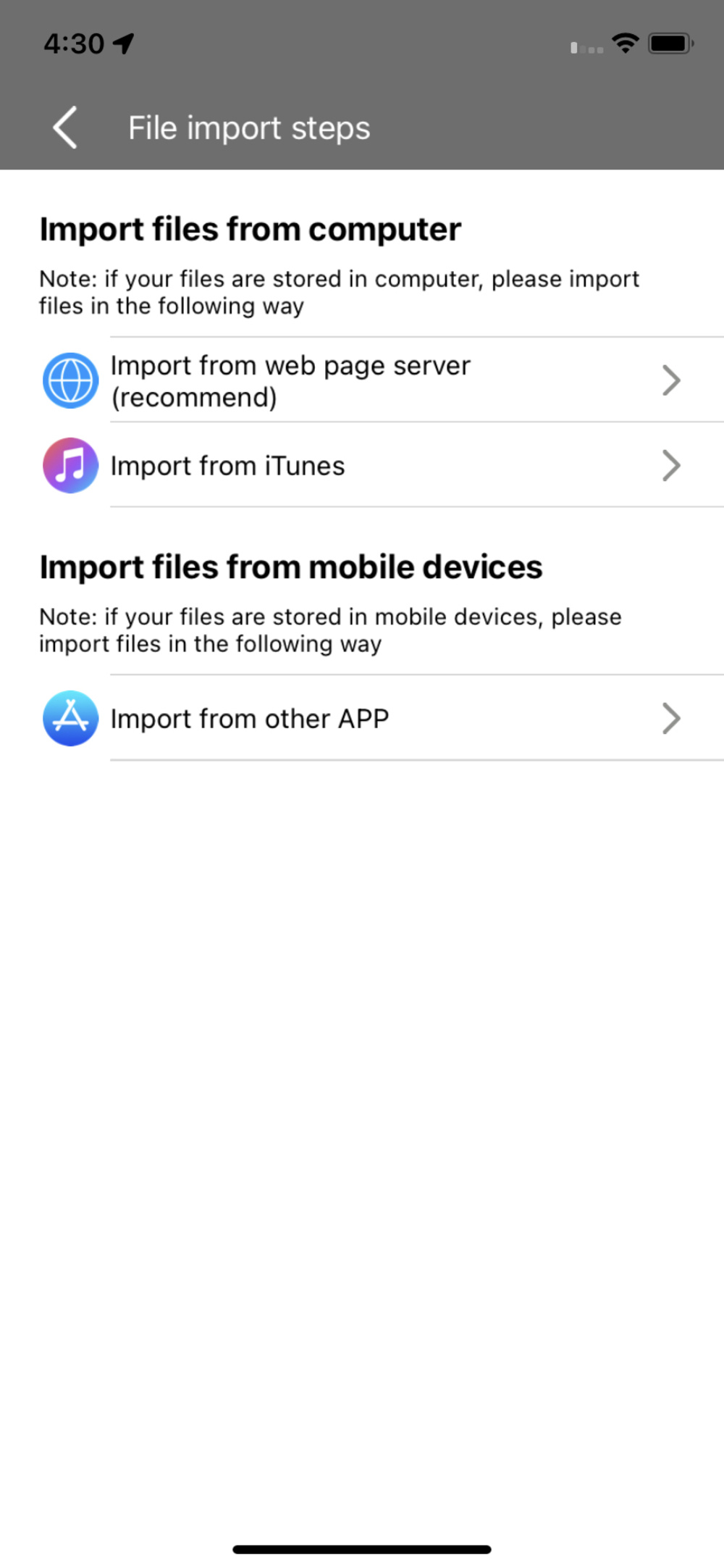 The iOS version of the app is especially hard to use. You can't print PDF, Microsoft Office, or TXT files by simply tapping the icon for each file type in the app. Instead, you have to tap "How to import files?" on the error screen, which brings you to this screen. You can tap on each one for instructions on how to execute each method, but each requires quite a few steps, so it isn't very easy to print from.