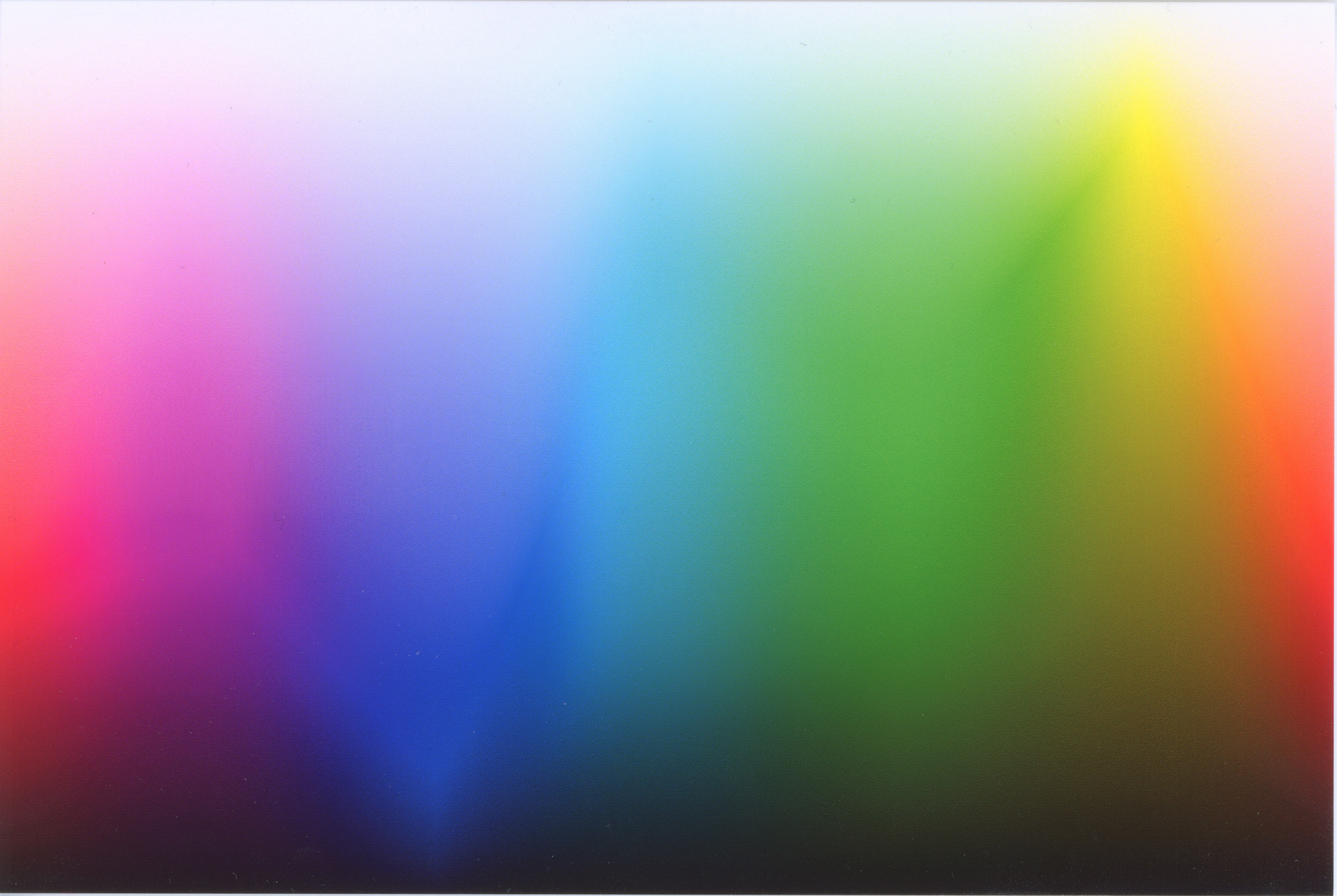To evaluate a printer's color gamut, we use the 'Parrots' picture as a sample and the Granger chart (sometimes referred to as the "Granger rainbow"). Like HSL charts found in many digital art programs for precise color-picking, the Granger chart is a picture that displays a very wide array of colors, organized by the color's hue from left to right and how light or dark the color is from top to bottom. The characteristic that sets it apart is the presence of a bright zig-zag line across all the colors at various heights. This zig-zag line roughly denotes the most-saturated tint of that particular hue. The presence or absence of this zig-zag line in a display or printed image is a tell-tale sign of how wide a printer's color gamut is. The Parrots picture provides a more realistic representation of the printer's performance when printing a photo.