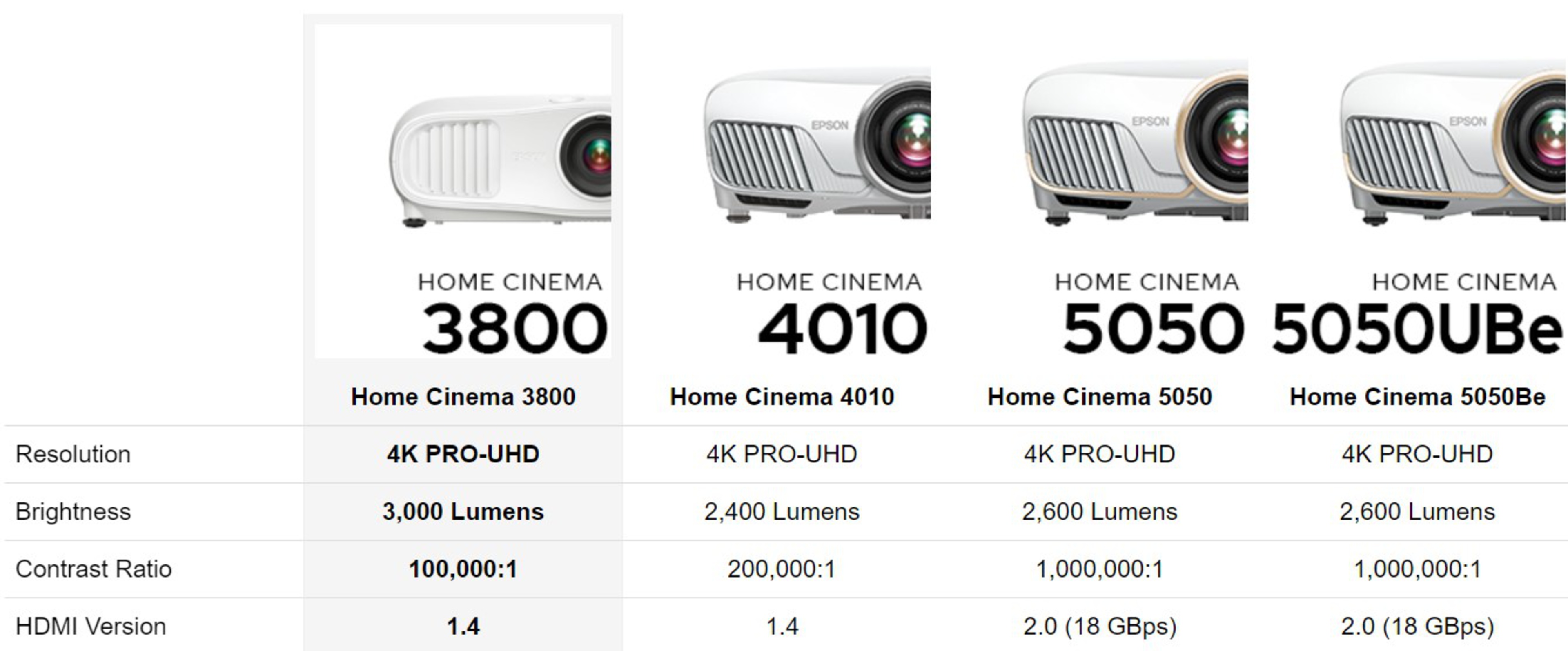 Product sheet of the Epson Home Cinema 3800 (source: Epson)