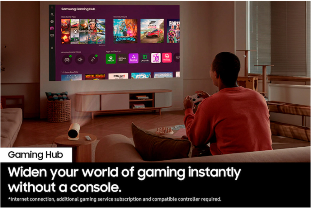 Samsung The Freestyle 2nd Gen projecting a 100" image in our testing room