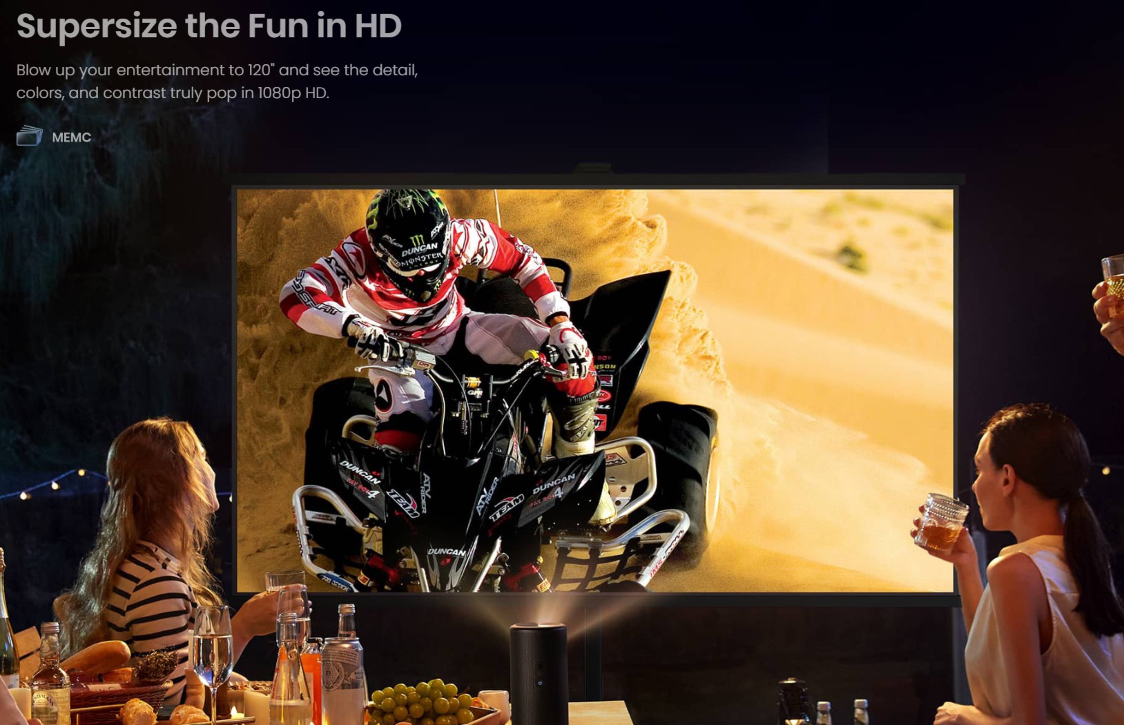 Although we've shown results from using the Freestyle 2nd Gen for this article, we could have used almost any other portable projector on the market and achieved similar results. As a matter of fact, here's what the marketing on Anker's product page for the Nebula Capsule 3 looks like. We measured its lumen output at ~210 lm once calibrated (only about 35 more than the Freestyle 2nd gen). As you can imagine, it would look significantly different if projecting a 120" image as shown in the simulated image if it were in a similar setup in the real world. |