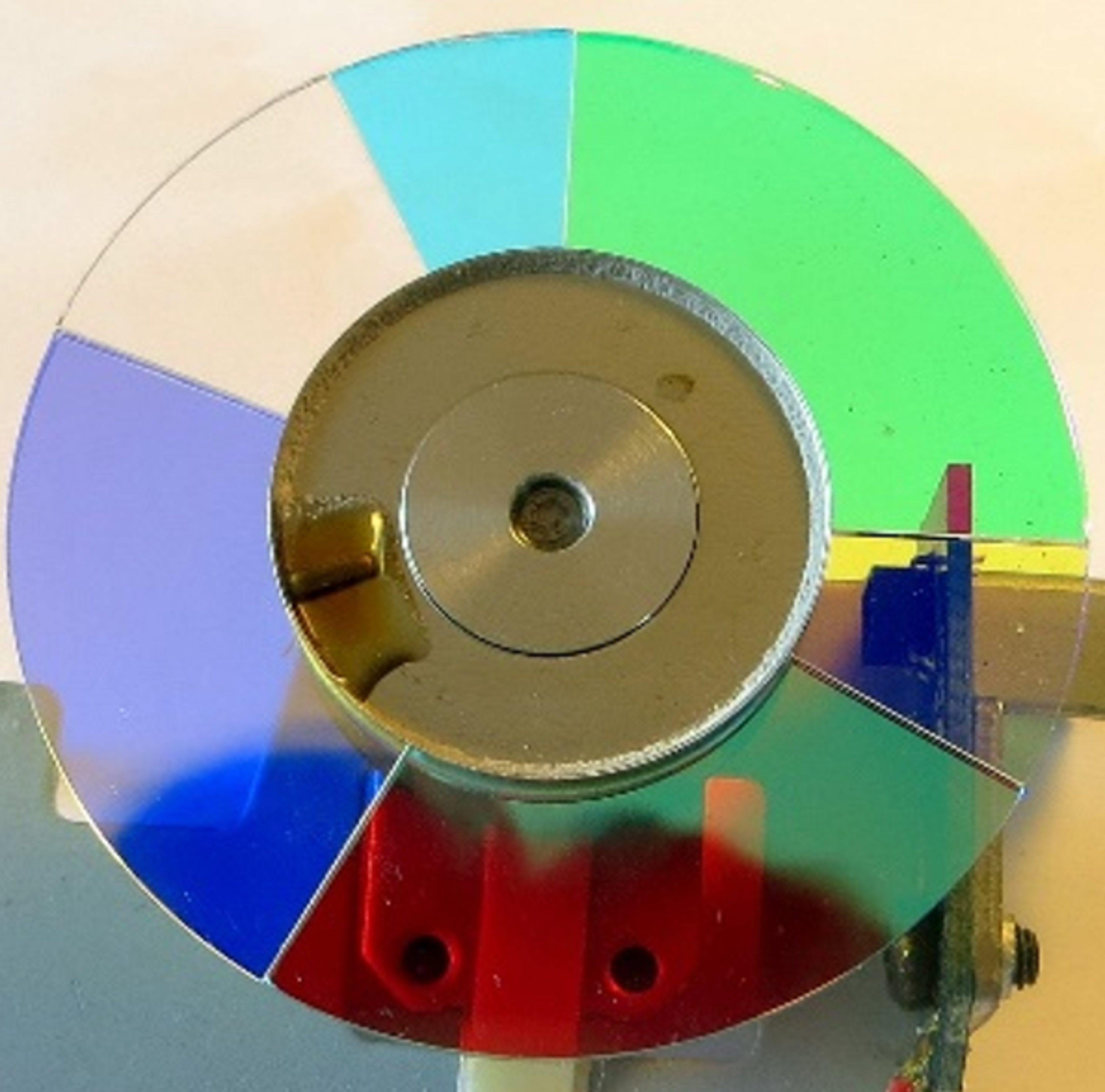 The color wheels used to generate the colors in most single-chip DLP projectors became very interesting to us, as manufacturers can add additional colors past the required RGB channels. A transparent section on color wheels will often be used to boost white light output. This is beneficial to the overall brightness of the picture, but it essentially lowers the projector's CLO relative to its WLO, resulting in dimmer, less vivid colors than you would get if the CLO were equal to the WLO. Although we're sticking to projectors for this article, what you can do by adding a white subcomponent to a DLP color wheel is akin to the addition of a white subpixel in WOLED TVs. Although they can match a QD-OLED's white light emission, they lag behind in terms of individual red, green, and blue light emissions. Below are examples of an RGB color wheel and a color wheel that adds transparent (white), cyan, and yellow subcomponents. Due to various design implementations in DLP projectors, like using color wheels and adding additional non-RGB filters, we sometimes observe significant differences between the WLO and CLO of some DLP projectors. The results of our measurements on DLP projectors are below. Note that some variation is expected because of measurement accuracy considerations, especially since 27 measurements are taken to calculate the CLO. |