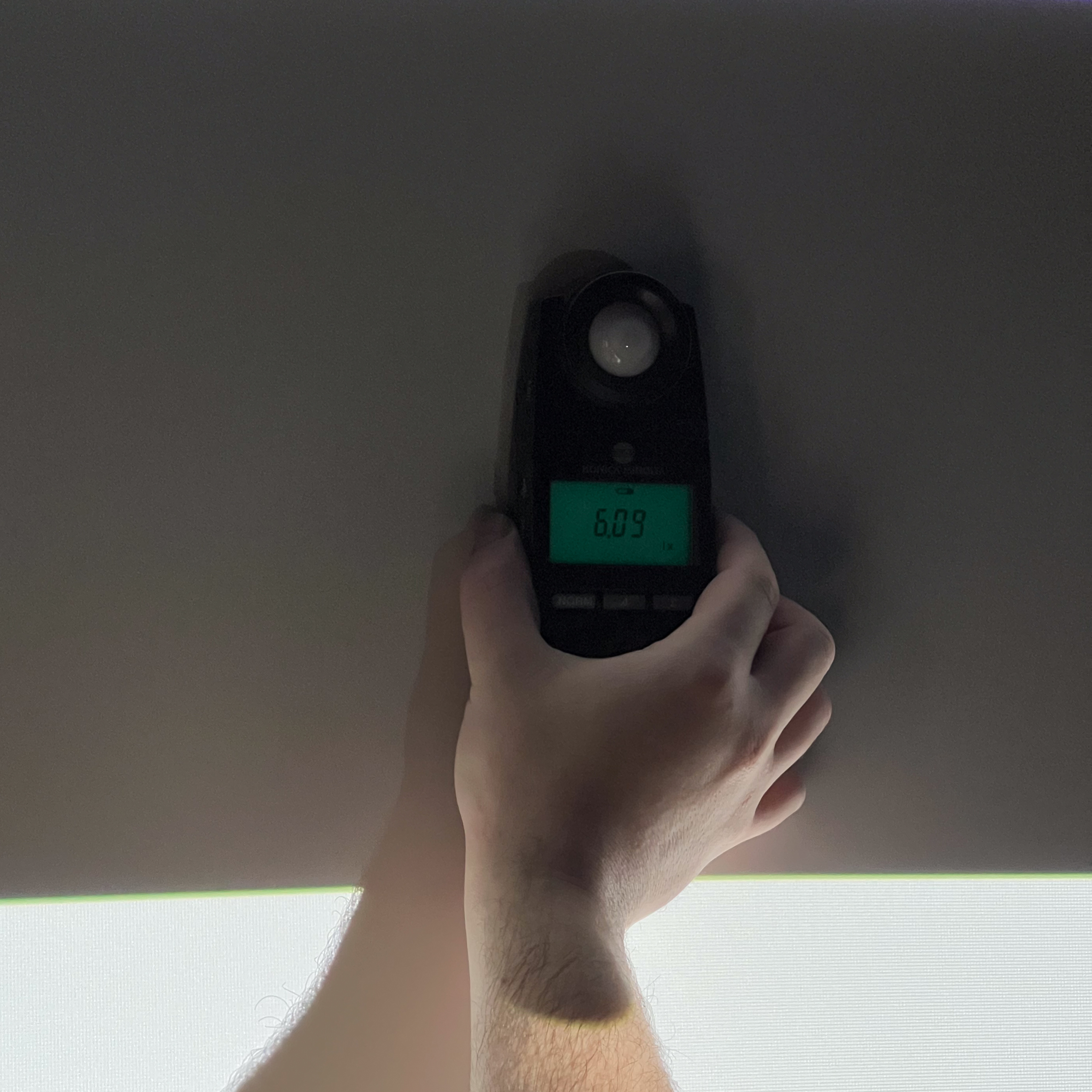 While that may not seem like a significant increase in the raw measured value (≈ 4 lux), the effect is compounded when used to calculate the final contrast ratio of the entire projected image. We'd have found a native contrast ratio of more than 50% lower if we'd taken all the measurements while wearing a t-shirt!