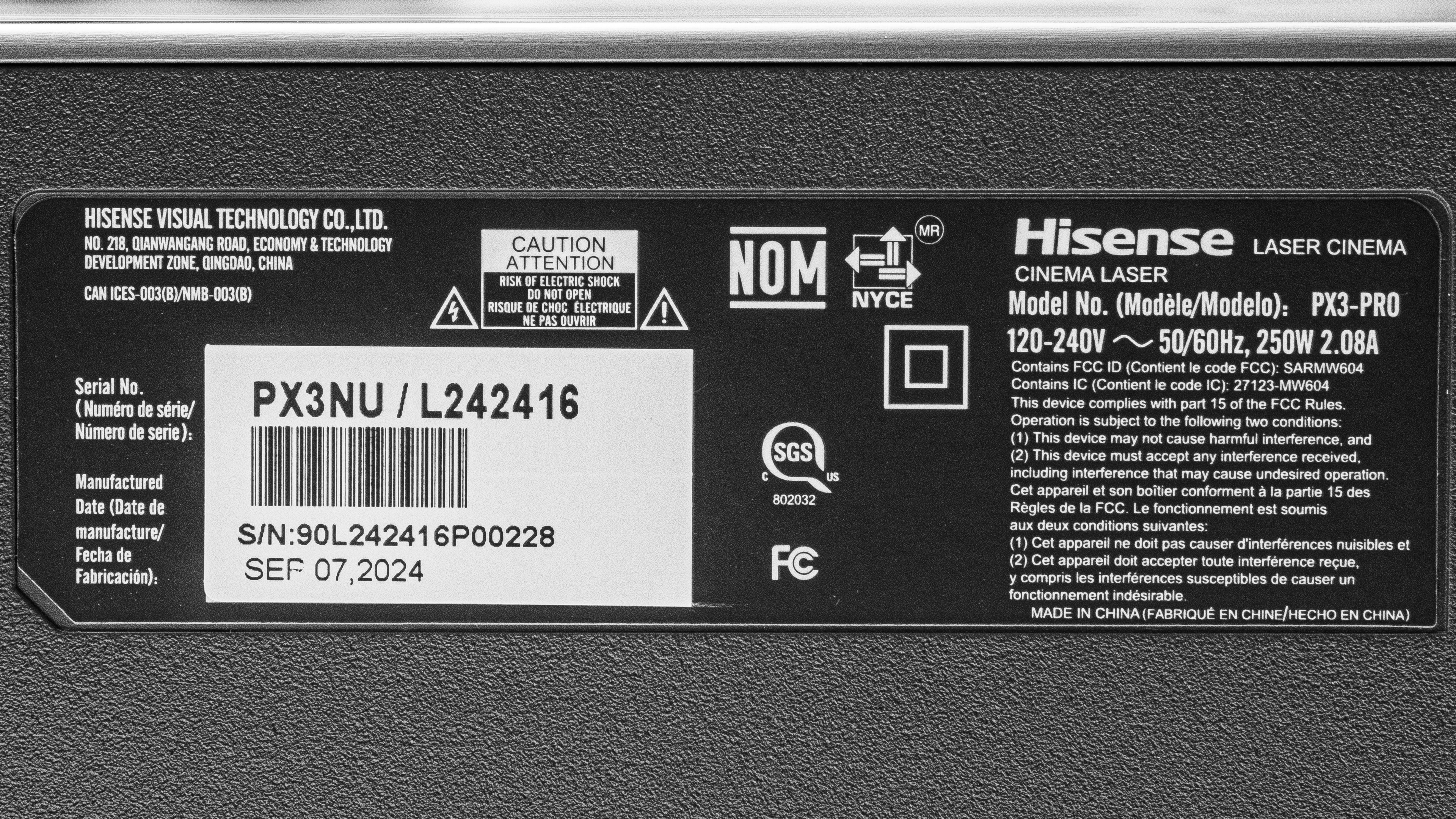 The Hisense PX3-PRO has motorized focus plus automatic and manual geometry tools. Hisense's auto-keystone requires you to scan a QR code and upload a picture of the projected image. It doesn't work very well, so you'll most likely need to adjust the image manually. Whether you do it automatically or manually, it's best to avoid keystoning when possible, as it impacts image quality.
