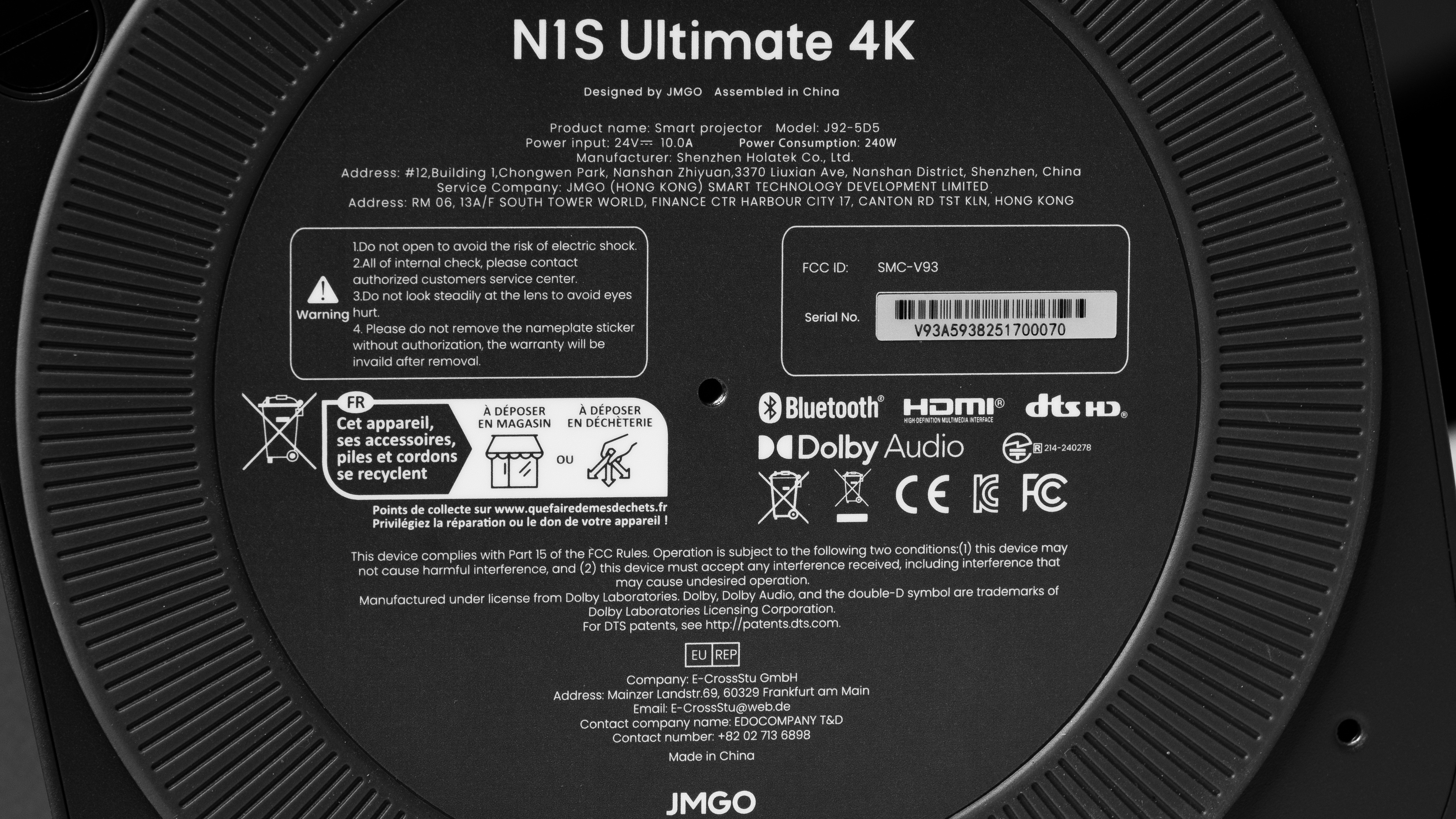 | JMGO N1S 4K | 1100 lm | 40–200" | 2× 5W | 2× HDMI 2.1 (1× eARC), USB-A 2.0 | Wi-Fi 6, BT 5.1 |