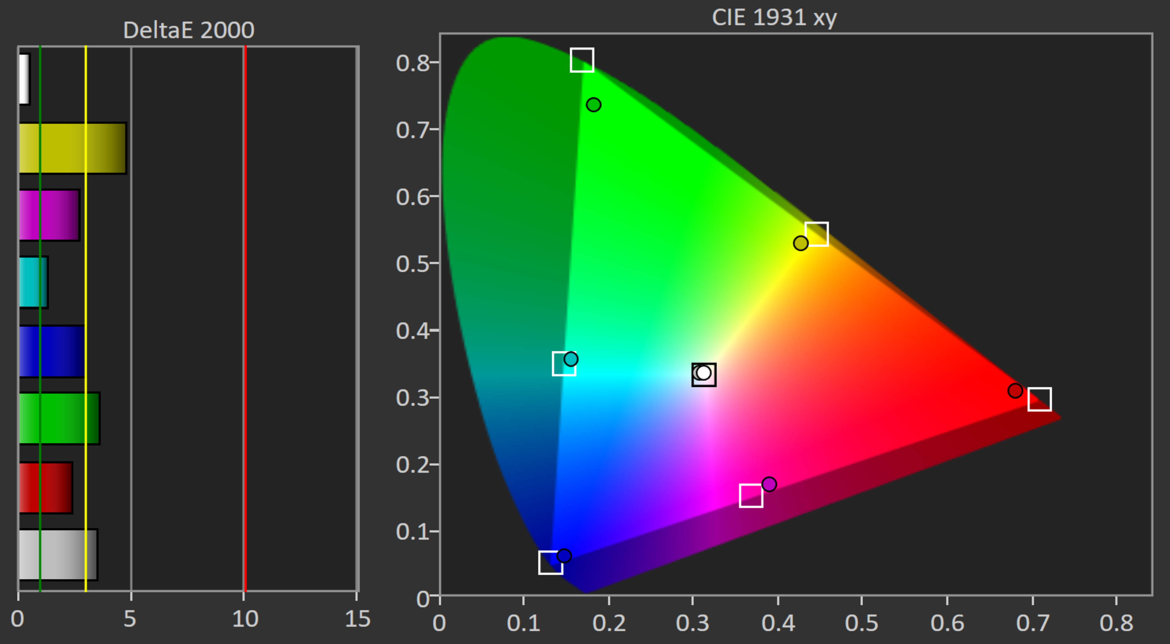 The LG CineBeam Q's color gamut is fantastic. It covers the entirety of the Rec. 709 color space. It even covers most of the wider Rec. 2020 space that is sometimes used in HDR content, although here, most colors are slightly off the mark.