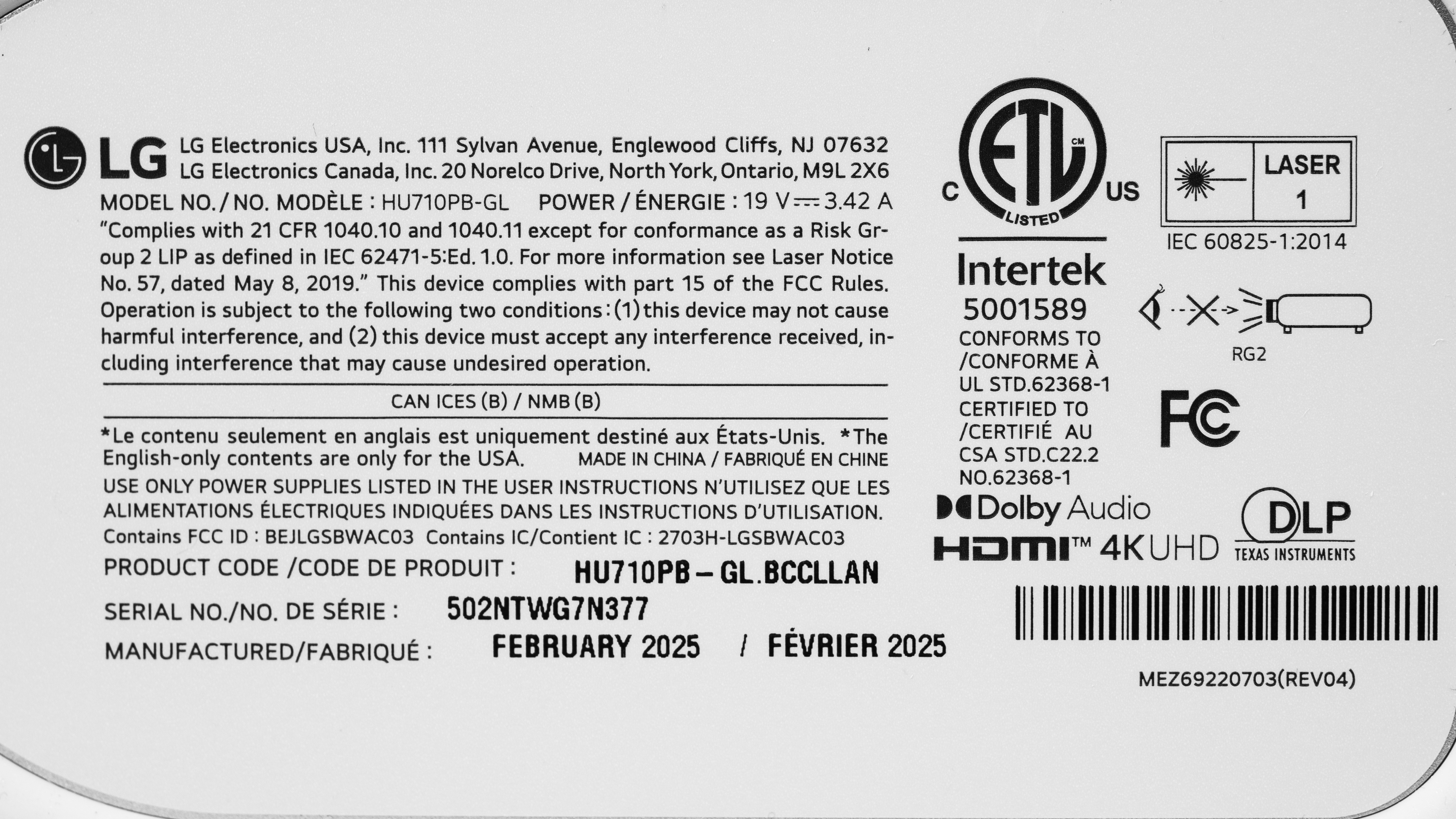 Our unit was manufactured in February 2025.