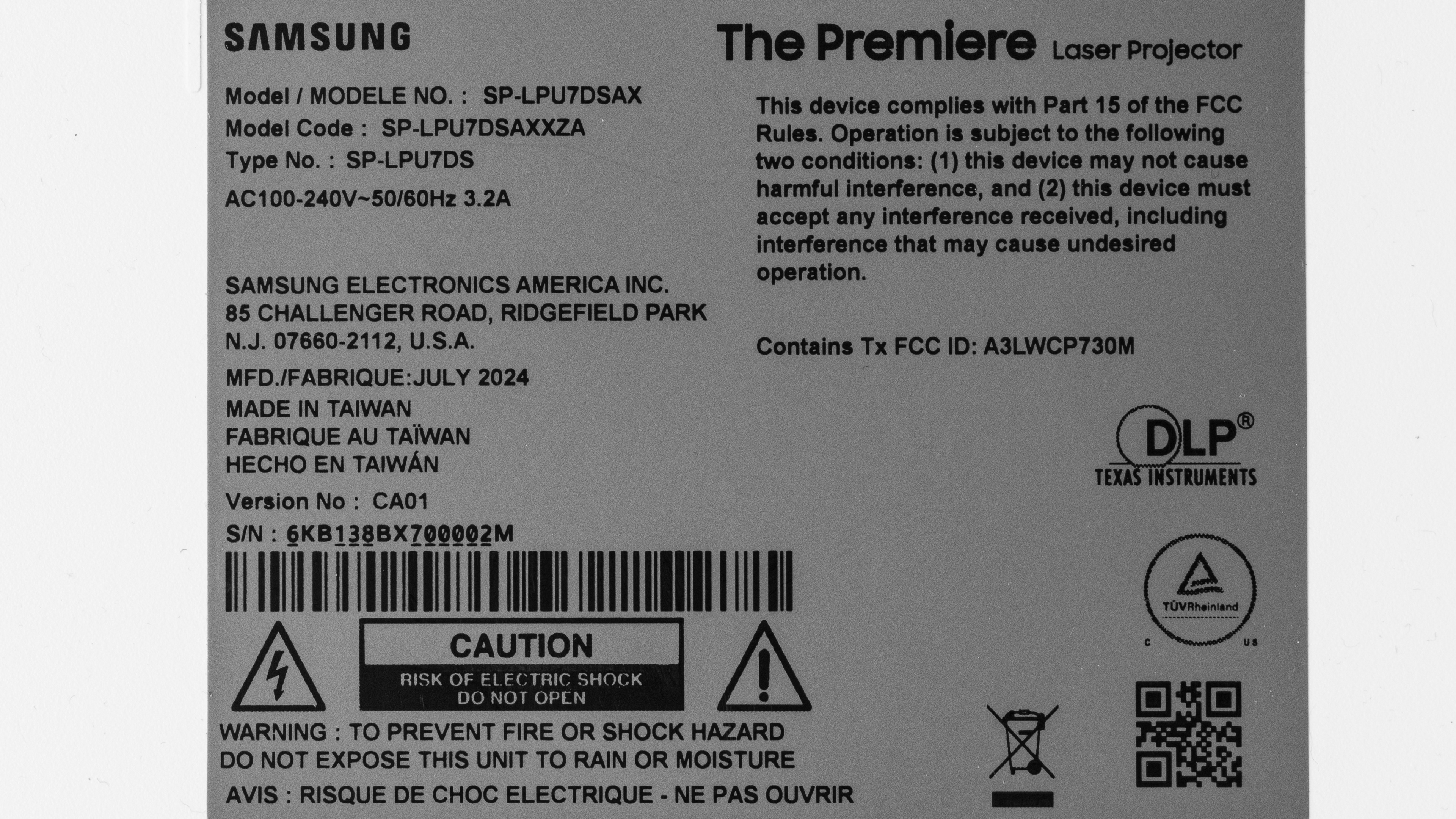 The Samsung The Premiere LPU7D is a 4k HDR10+ capable Ultra Short Throw (UST) projector and replaces the Samsung The Premiere LSP7T. Just like its predecessor, the LPU7D is meant to be installed very close to the wall it's projecting to as it's capable of projecting on large surfaces from a very short distance: it projects a 90-inch image at a distance of 9.7 inches, and up to 120 inches at 16.3 inches. It comes with Samsung's Tizen OS smart interface, is compatible with the Bixby and Amazon Alexa voice assistants, and is fully cast capable. Its three HDMI 2.0 ports are each capable of outputting 4k @ 60Hz, and it has Wi-Fi 5, Bluetooth 5.2, and an Auto Game Mode for gaming. Finally, it uses a laser light source with a lamp life of at least 20000 hours, and it has a 30W 2.2ch speaker system.