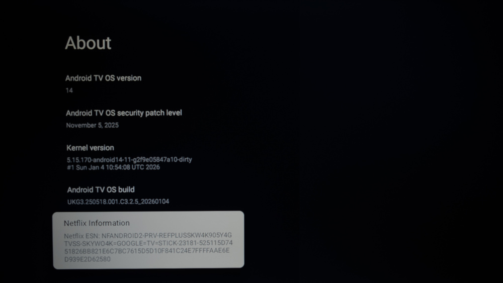 The unit we bought and tested was using the Android TV OS build UKG3.250518.001.C3.2.5_20260104.