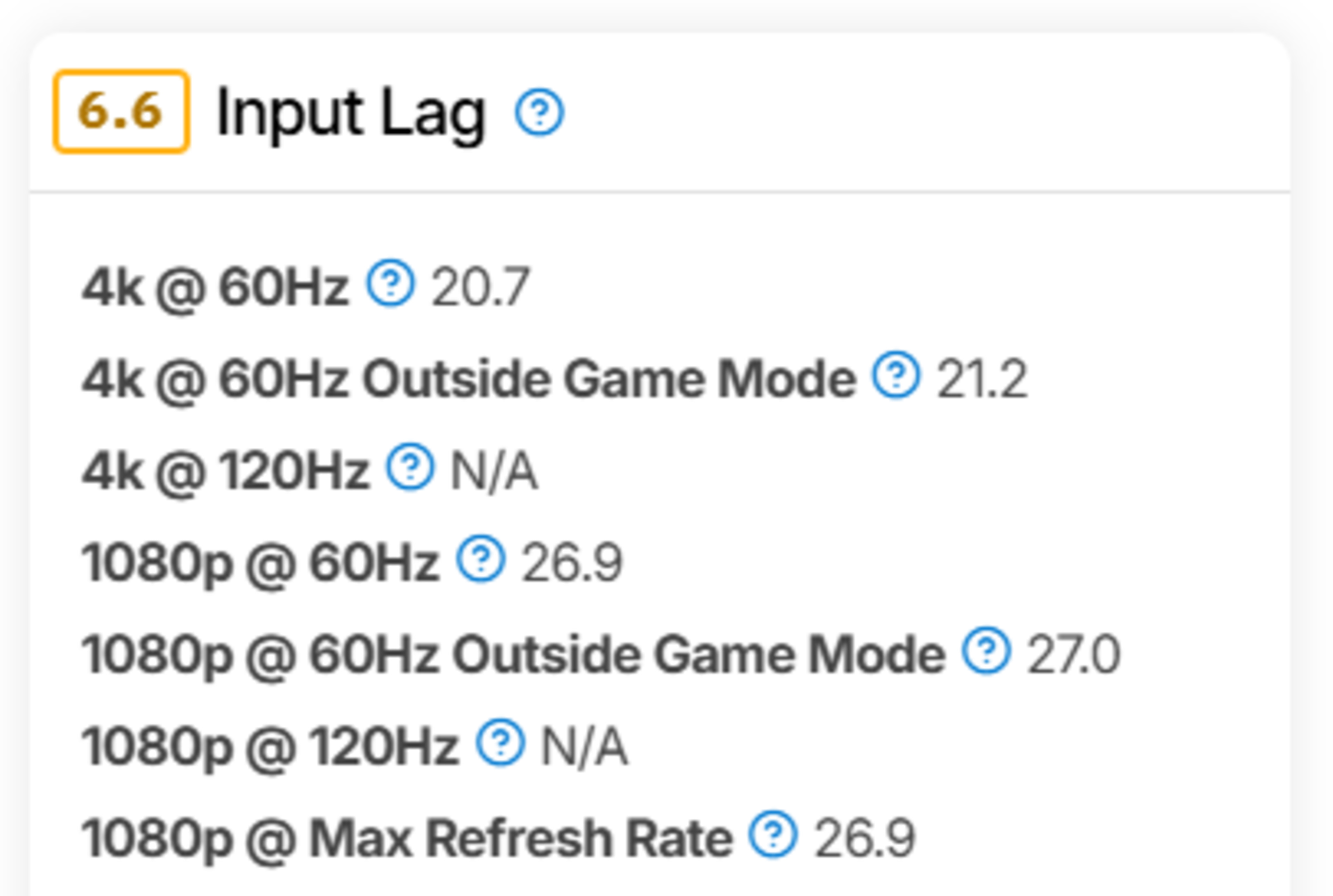 - Input Lag at common resolutions/refresh rates and inside/outside Game Mode.