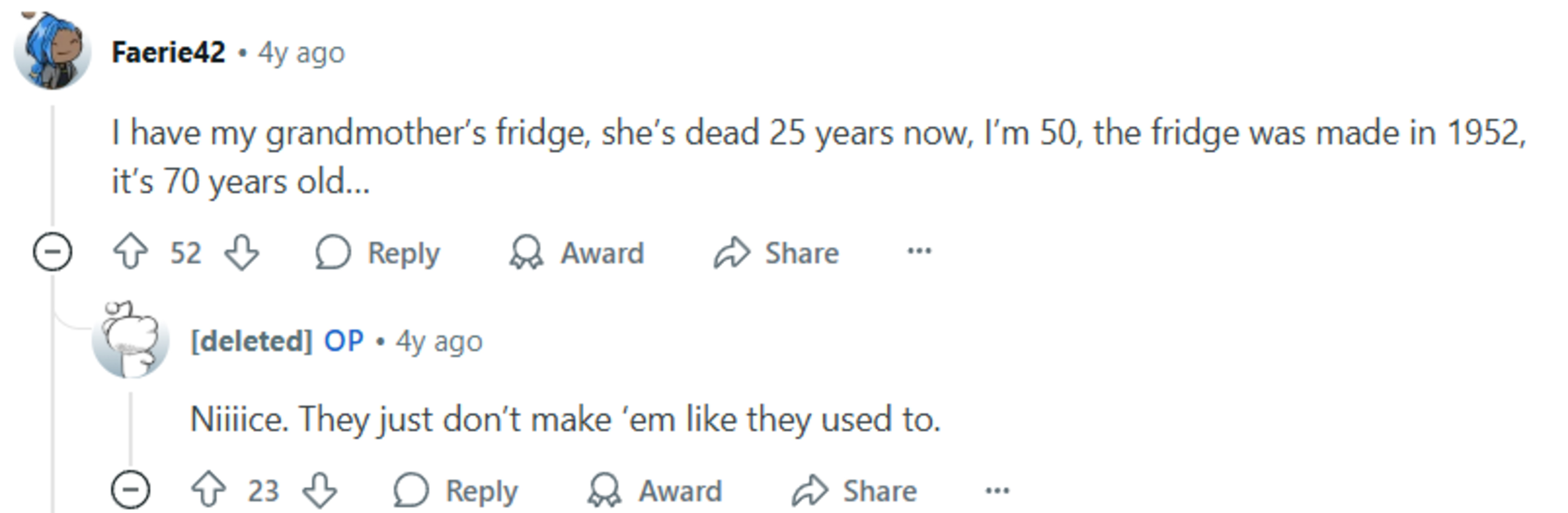 As repair costs reach or exceed the price of purchasing a new refrigerator, many people understandably forego repair in favour of a brand new, more efficient appliance. This ultimately leads to there being fewer modern refrigerators in service, limiting the amount of historical data available.