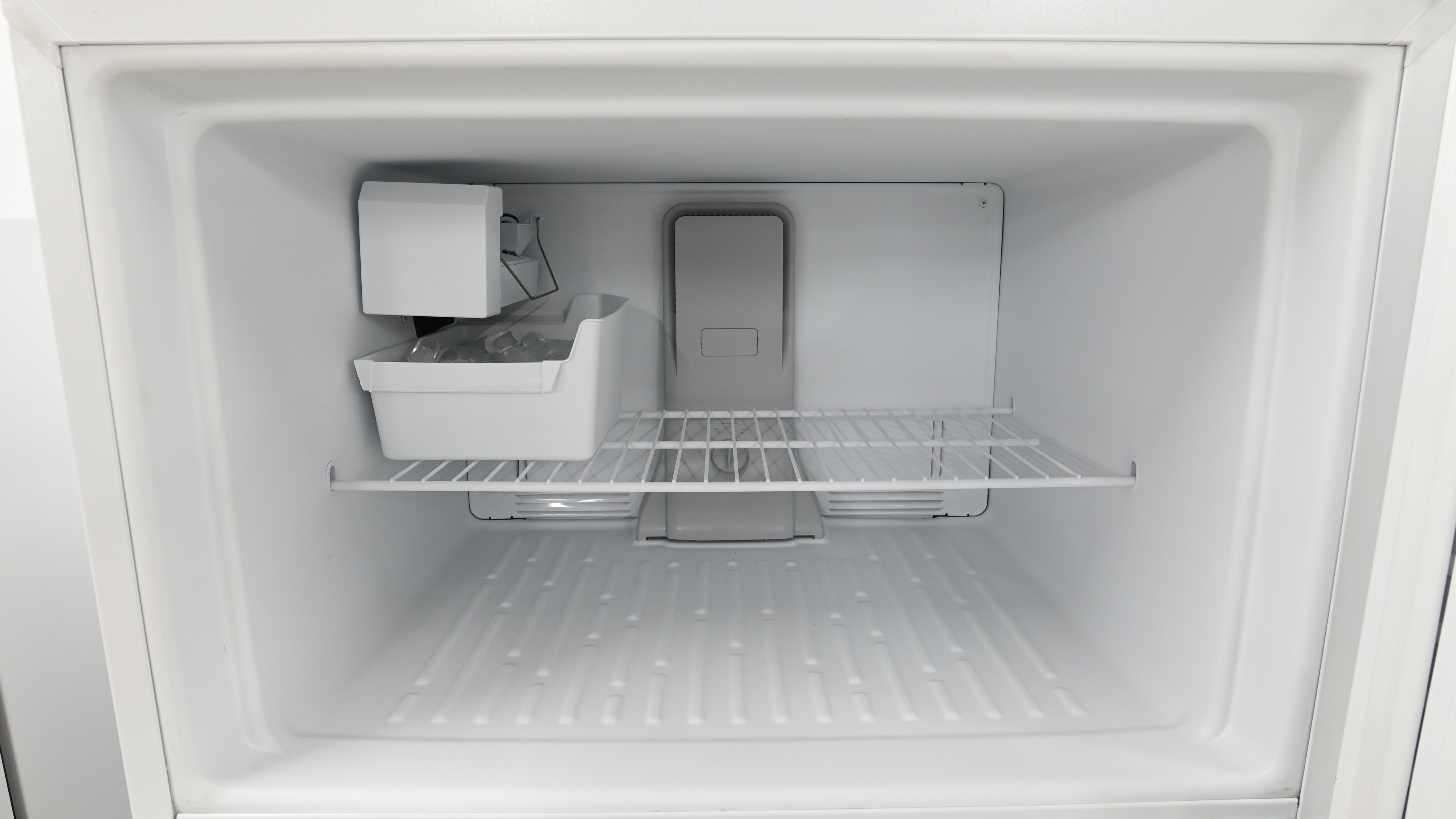 The ice maker is always located in the freezer. This is the best location for an ice maker, and these basic ice makers are usually ejector designs, which are more reliable than twist-tray alternatives. Ejector-style ice makers create ice in a cast metal mold and heat the mold when the ice is solid, detaching the ice cubes, while an arm with fingers rotates and ejects the ice out of the mold into the tray below. Twist-tray ice makers cast the ice in a plastic ice cube tray, and a motor twists the tray to detach the ice, though the plastic tray can degrade from a mix of thermal shock and mechanical stress over time.