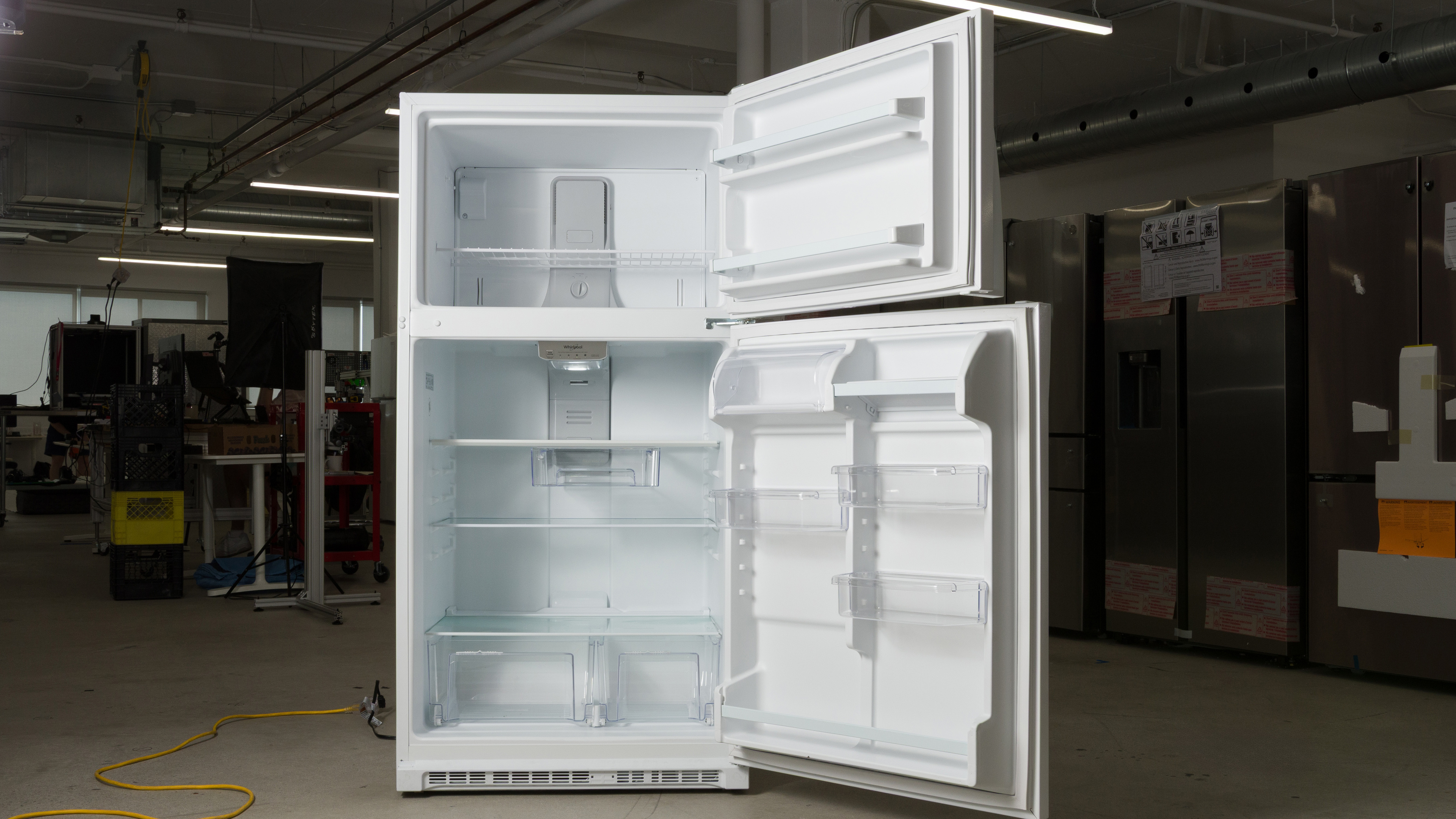 Here are the top freezer fridges we've tested, sorted by advertised refrigerator compartment capacity. We test the actual usable capacity for both the fridge and freezer, and we note the percentage of the advertised capacity that's actually usable. Manufacturers may overstate the capacity, and usable capacity drops as manufacturers add hardware like pull-out drawers, ice makers, and ice buckets. While these features add convenience, they render some internal volume unavailable for storing food items.