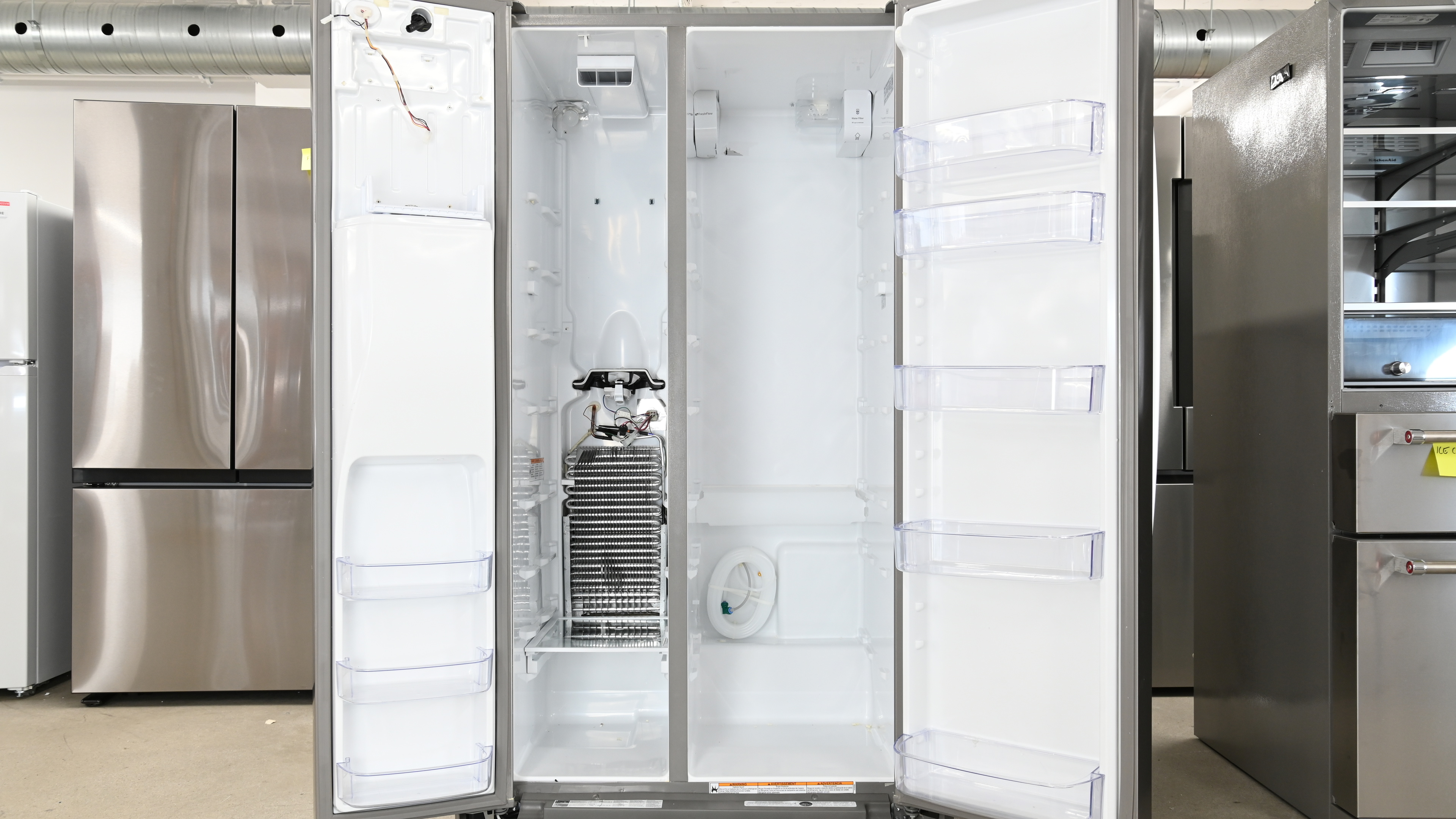 Here are the side-by-side fridges we've tested, sorted by advertised refrigerator compartment capacity. We test the actual usable capacity for both the fridge and freezer, and we note the percentage of the advertised capacity that's actually usable. Manufacturers may overstate the capacity, and usable capacity drops as manufacturers add hardware like pull-out drawers, ice makers, and ice buckets. While these features add convenience, they render some internal volume unavailable for storing food items.