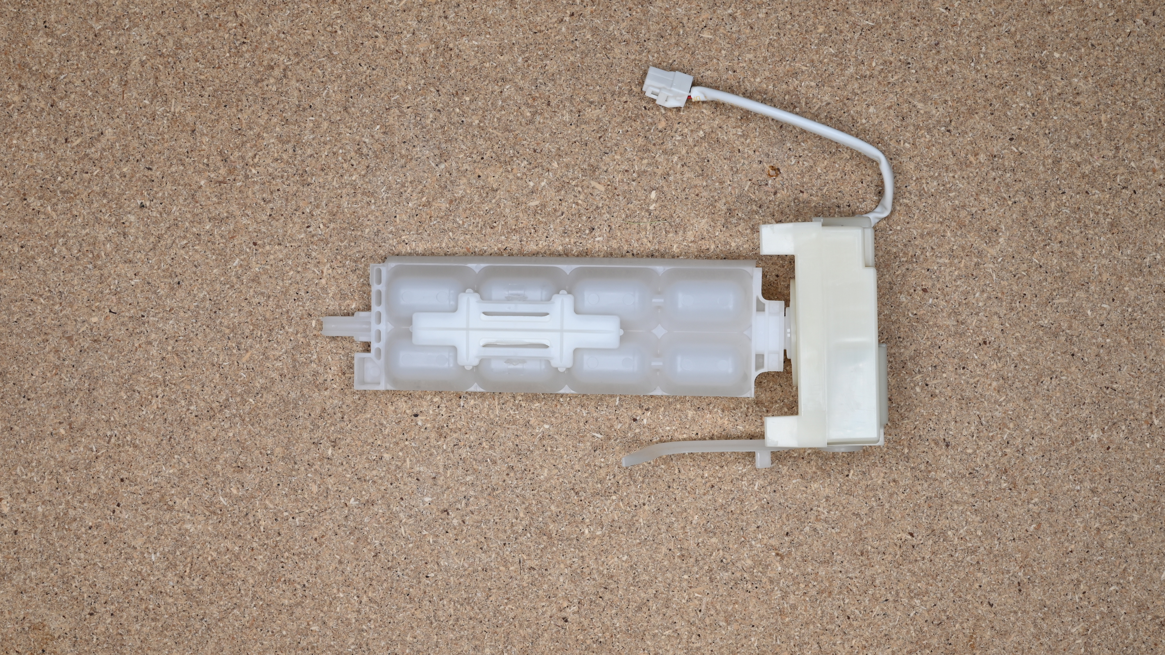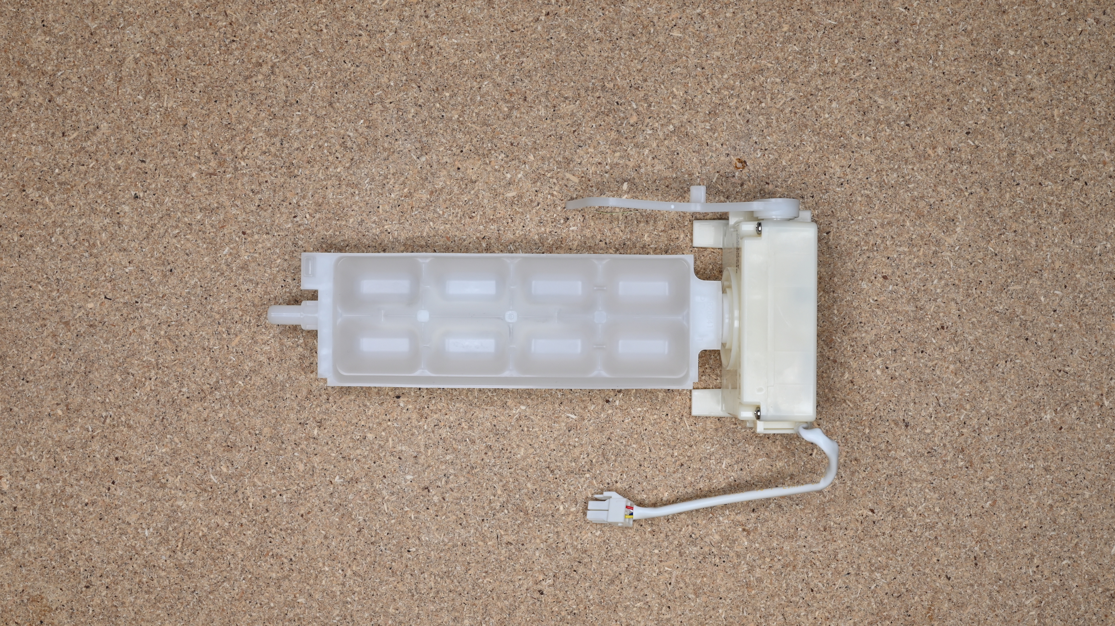 The Fisher & Paykel Series 7 RF201AHJSX1 uses a twist-tray style ice maker in the freezer. A twist-tray ice maker makes ice in a plastic tray, using a motor to flip over and twist the tray to pop the ice out. This design is potentially more failure-prone than the competing ejector-type, which casts ice into a metal mold, uses a heater to detach the formed ice, and then uses rotating plastic fingers to eject the ice. With the twist-tray type, the twisting force could crack the tray since the plastic gets brittle over time in low temperatures, especially since it's subject to thermal stresses, as it turns cool water into cold ice.