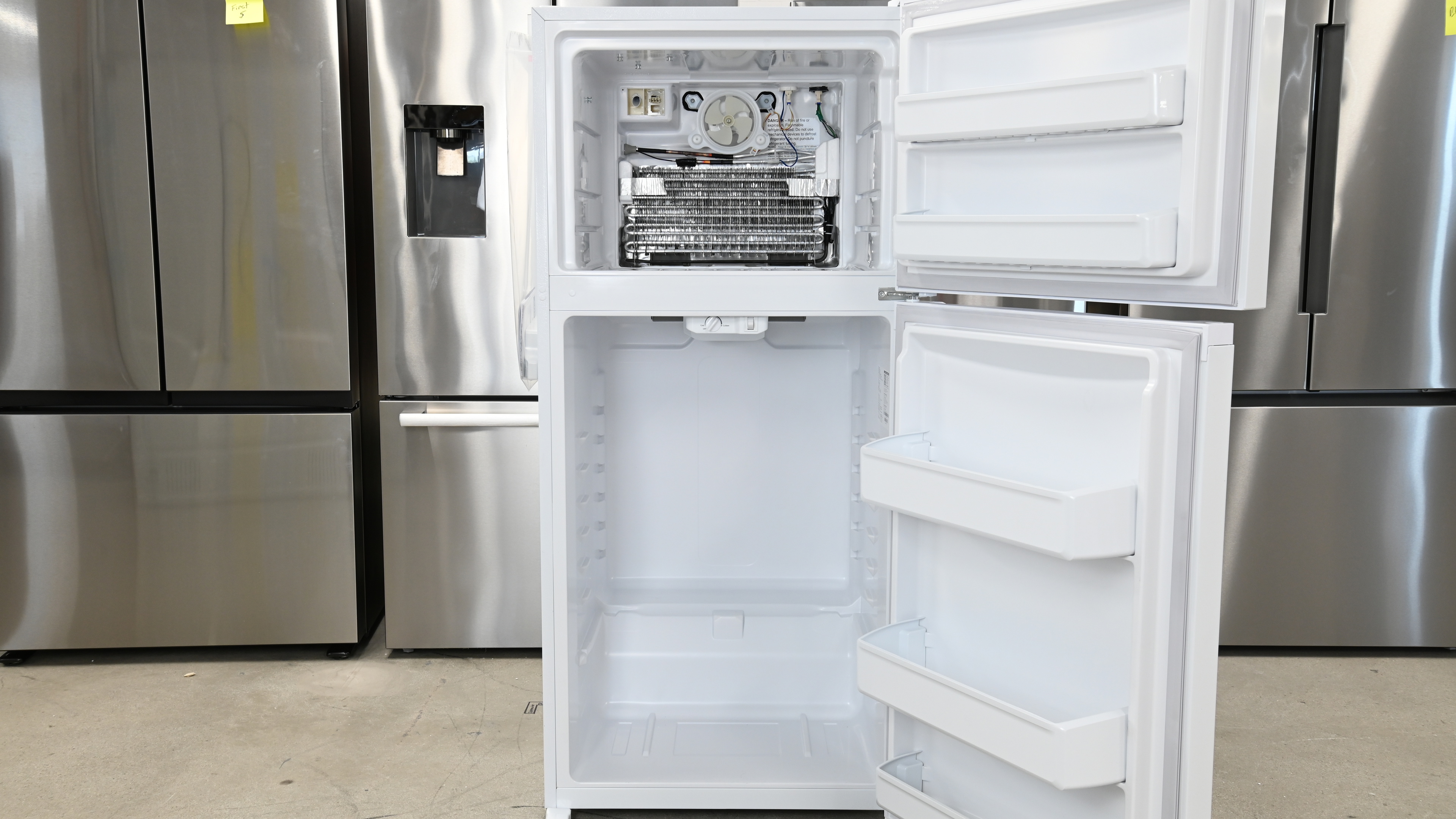 The Frigidaire FFTR1425VW is a 28-inch top freezer refrigerator. It's about as basic as a fridge can be, with a simple fixed-speed compressor, a mechanical thermostat, and no extraneous fripperies like an in-door water dispenser or a separate temperature-controlled compartment. Its highly compact footprint makes it an attractive option for smaller kitchens, and its back-to-basics design introduces few obvious failure points. That said, if you have the room for it, we'd recommend going for a larger 30-inch model, like the Frigidaire FFTR1835VW or LG LTCS20020S. These models offer roughly a 20% jump in interior volume, in exchange for an approximately 10% bigger footprint. This added space makes them far more useful for small families, especially when it comes to freezer space. In the case of the LG specifically, there are a few additional quality-of-life enhancements, like an inverter-controlled compressor, which can help reduce energy demands during normal operation, and an available ejector-style ice maker, which will hold up over time better than the Frigidaire's available twist-tray unit.