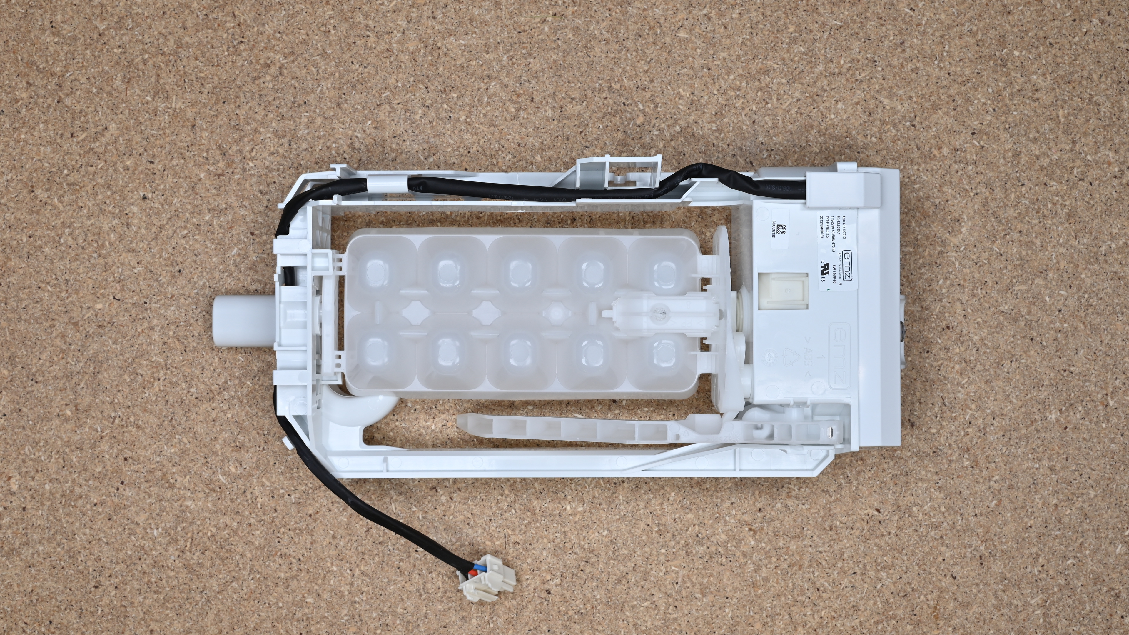 This fridge is sold without an ice maker, but you can purchase Frigidaire's IM117000 ice maker kit separately from their online store and install it yourself. This is a twist-style ice maker; as the name implies, the ice mold is twisted by a motor to release the cubes inside. Traditionally, these ice makers aren't quite as robust as an ejector-style unit, with their almost entirely plastic construction becoming brittle in sub-zero conditions and being liable to cracking as they twist.