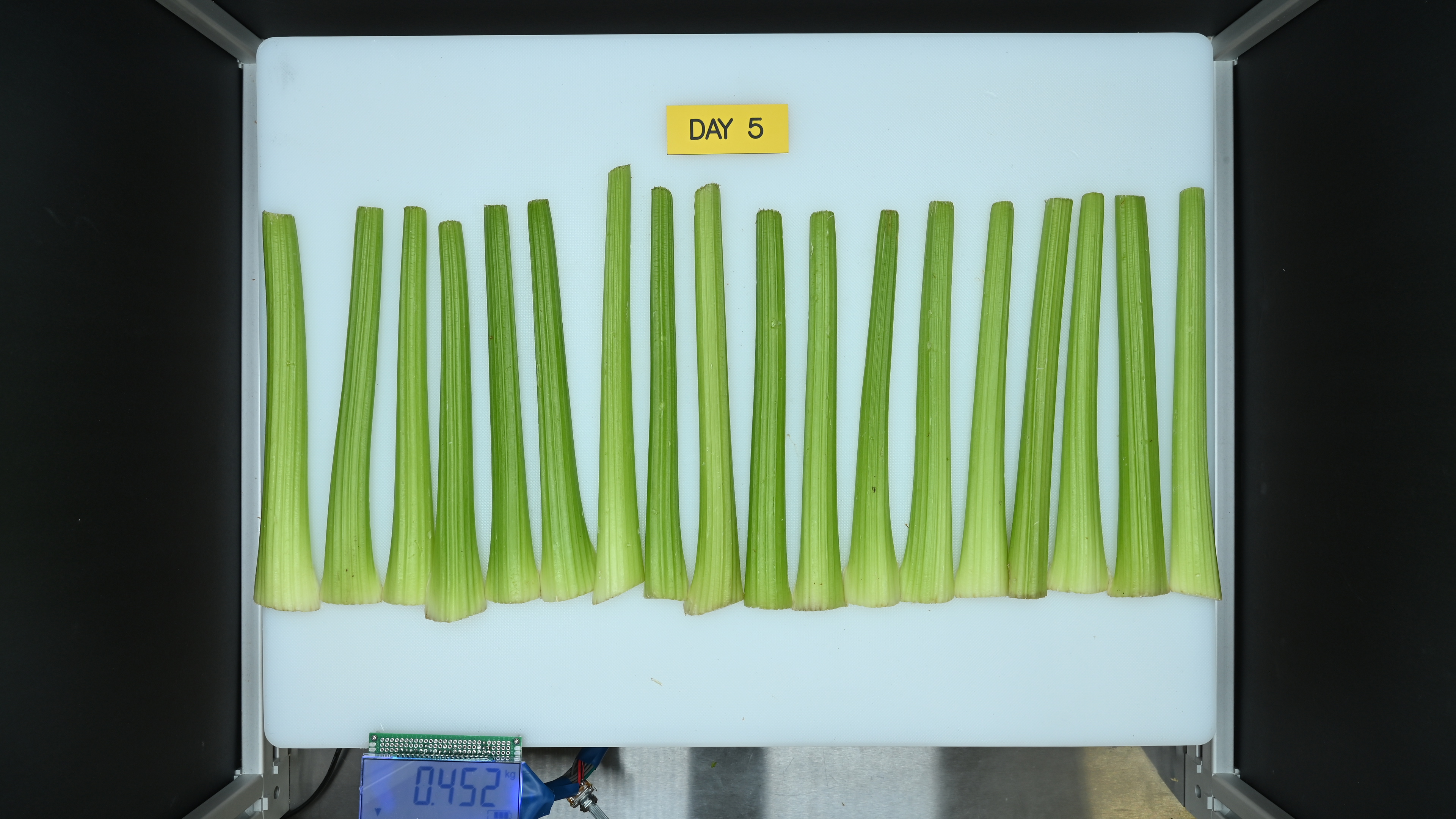 The Frigidaire FFTR1425VW's produce preservation performance is only okay. Humidity levels both inside the full-width crisper drawer and main cabinet are lower than average, causing foodstuffs like iceberg lettuce or celery to begin losing their snap within the span of a week or so.
