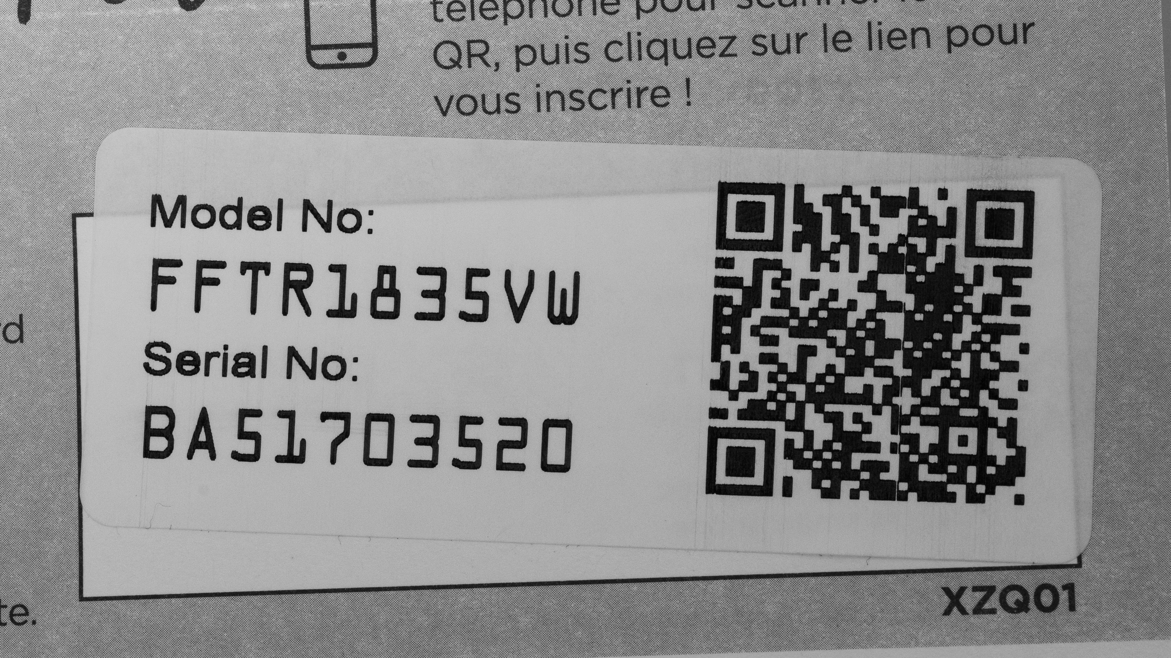 We tested the FFTR1835VW, and for those interested, here's the product label.