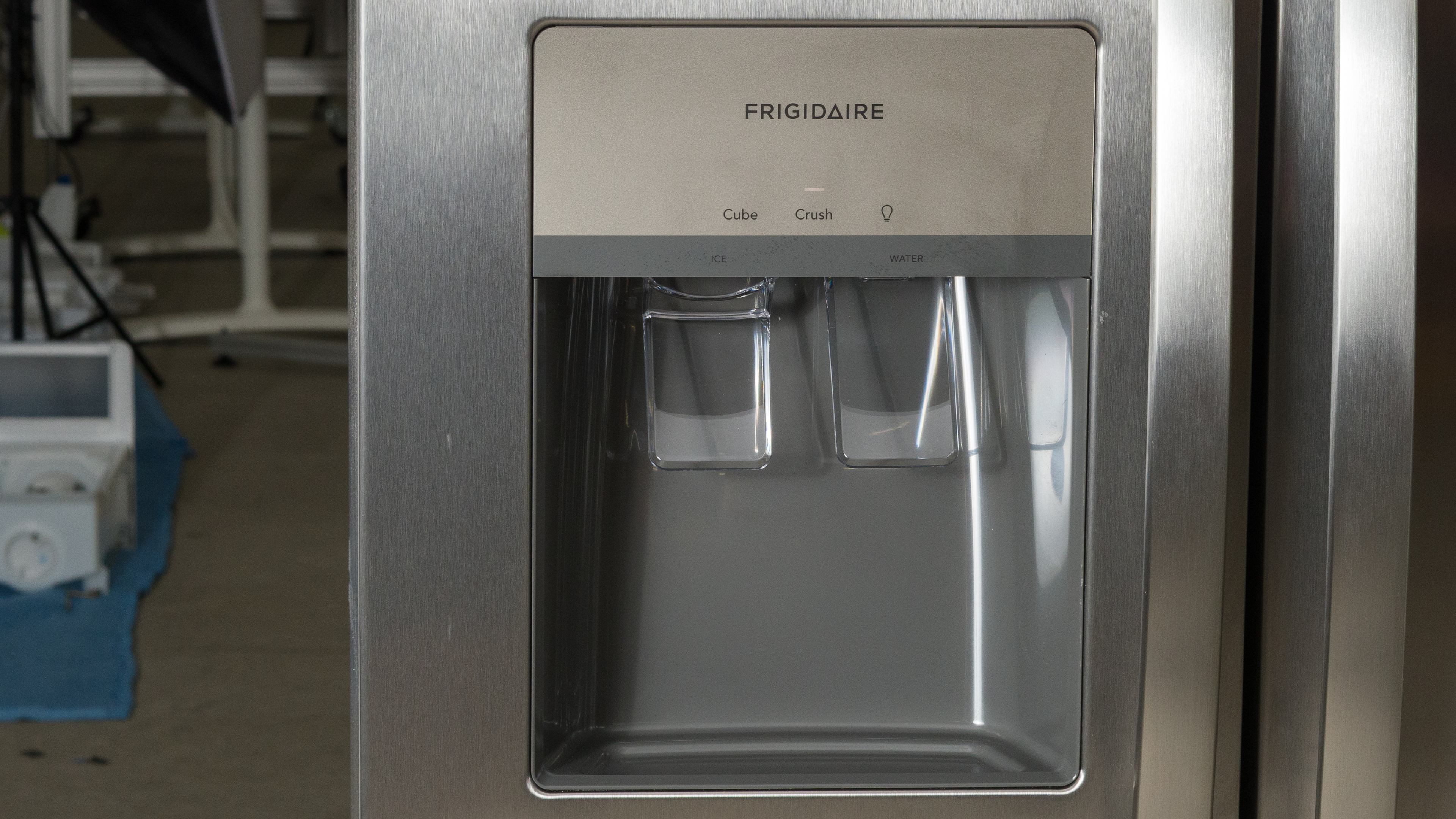 The Frigidaire FRSS2623AS has a combination filtered water and ice dispenser built into its freezer door. Unlike the Samsung RS27T5200SR, there's a built-in light when triggering the dispenser, making it easier to gauge how full your glass or pitcher is at a glance. It's worth noting that the water filter status light is only visible when opening the fridge compartment door.