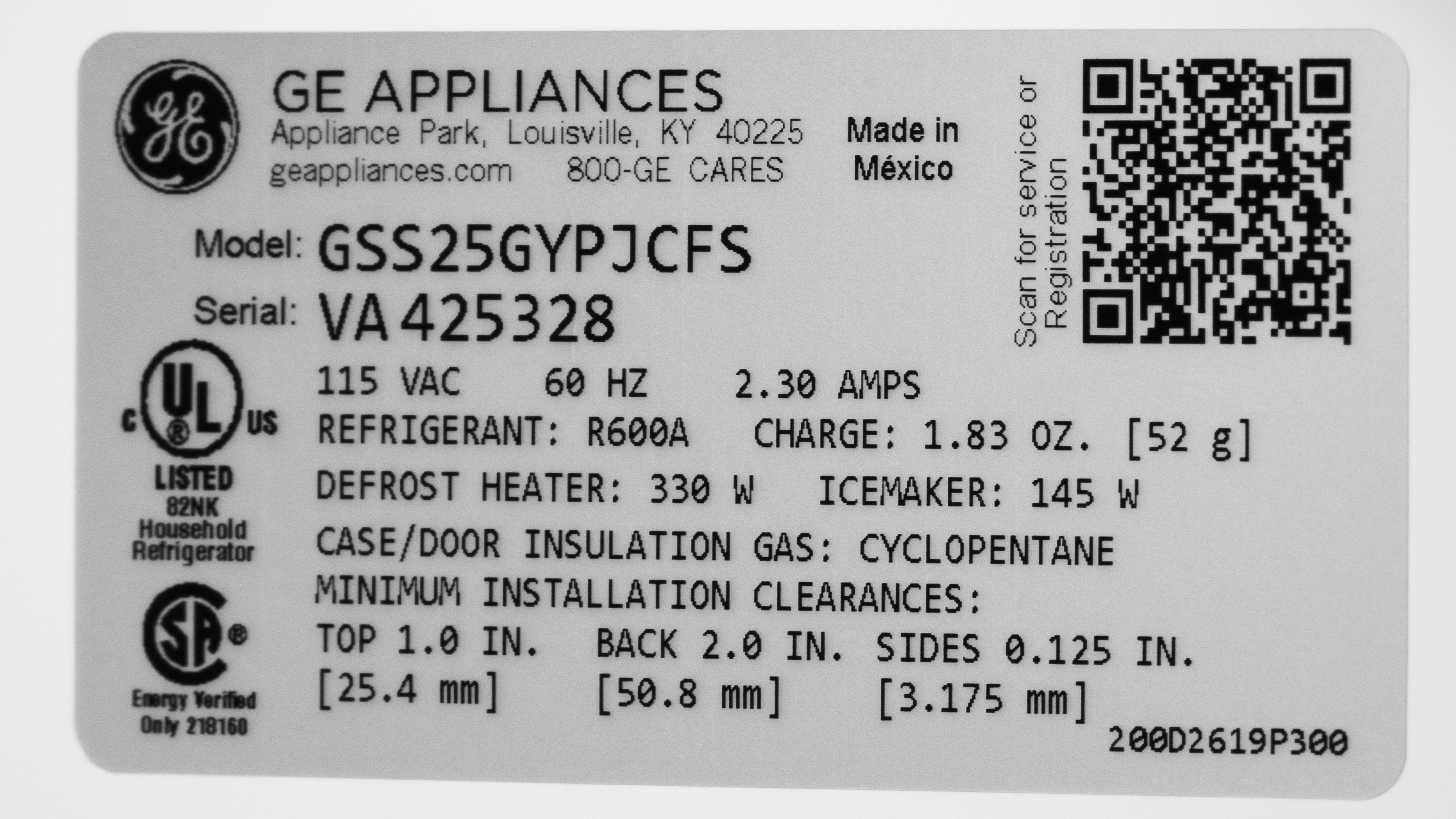 We bought and tested the GSS25GYPFS variant, finished in stainless steel, and for those interested, here's a photo of our product label. If you come across another variant of this refrigerator, let us know in the comments below so that we can update our review.