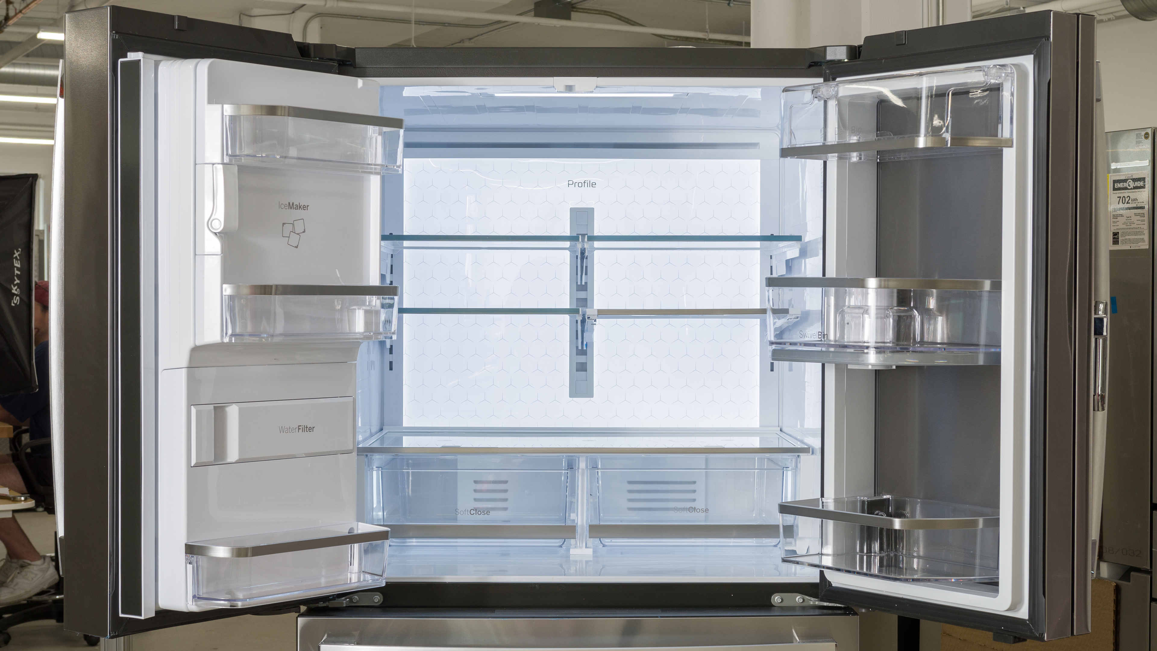 The GE Profile PVD28BYNFS is a good option for everyday use. The temperature uniformity is generally very good with a dedicated evaporator in each section for temperature control. Unfortunately, the door bins are significantly warmer than the rest of the refrigerator compartment, so you'll want to store temperature-sensitive foods like milk or butter in the main compartment. It also offers good storage capacity in the fridge and freezer, with very deep door bins in the door-in-door and split fridge shelves that you can set to 14 positions to accommodate tall items like bottles. Produce preservation is decent, owing mainly to the separate in-fridge evaporator keeping humidity in the fridge high, but the produce drawers don't retain moisture well, leading to wilted leafy greens in a little over a week.