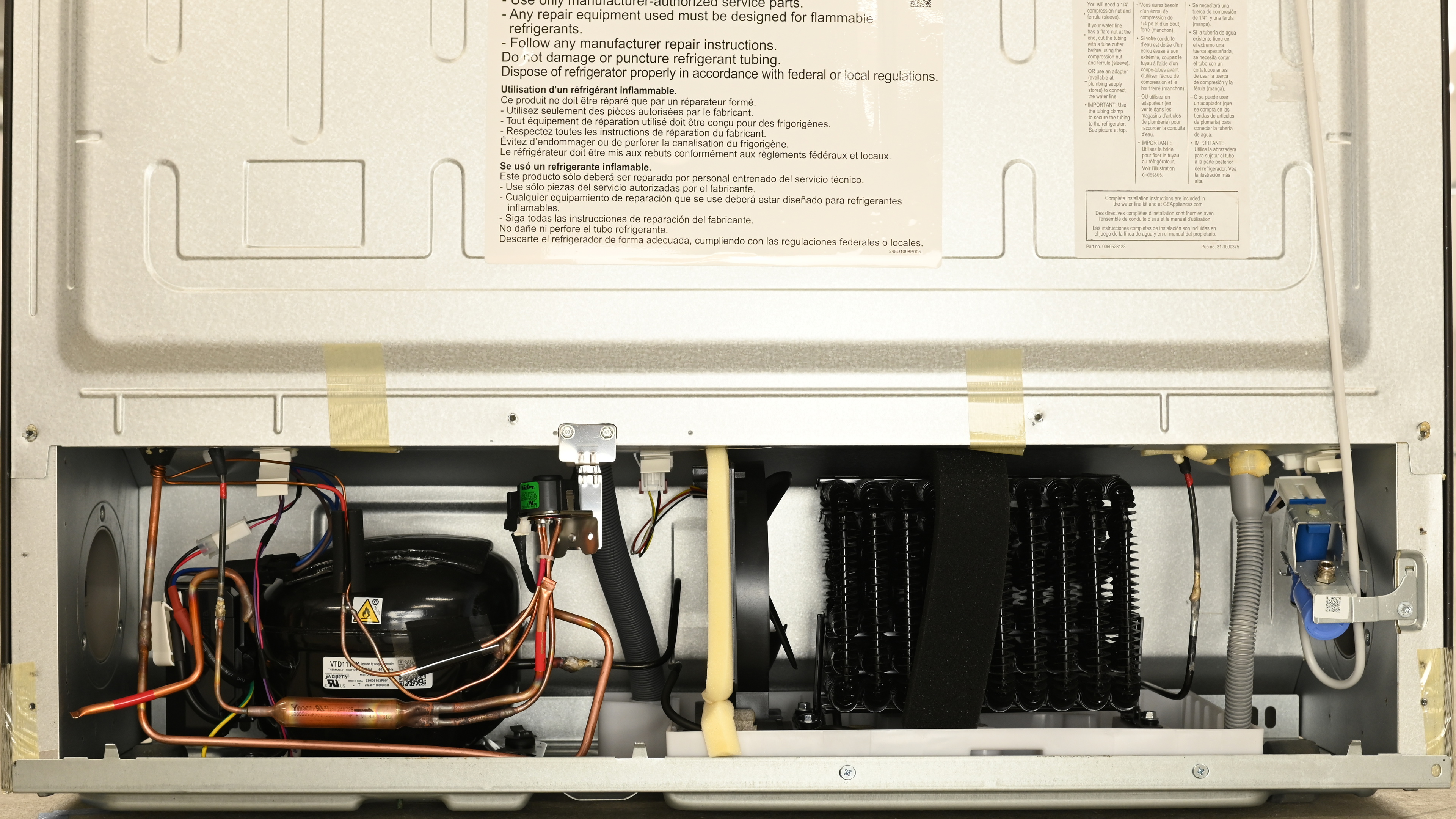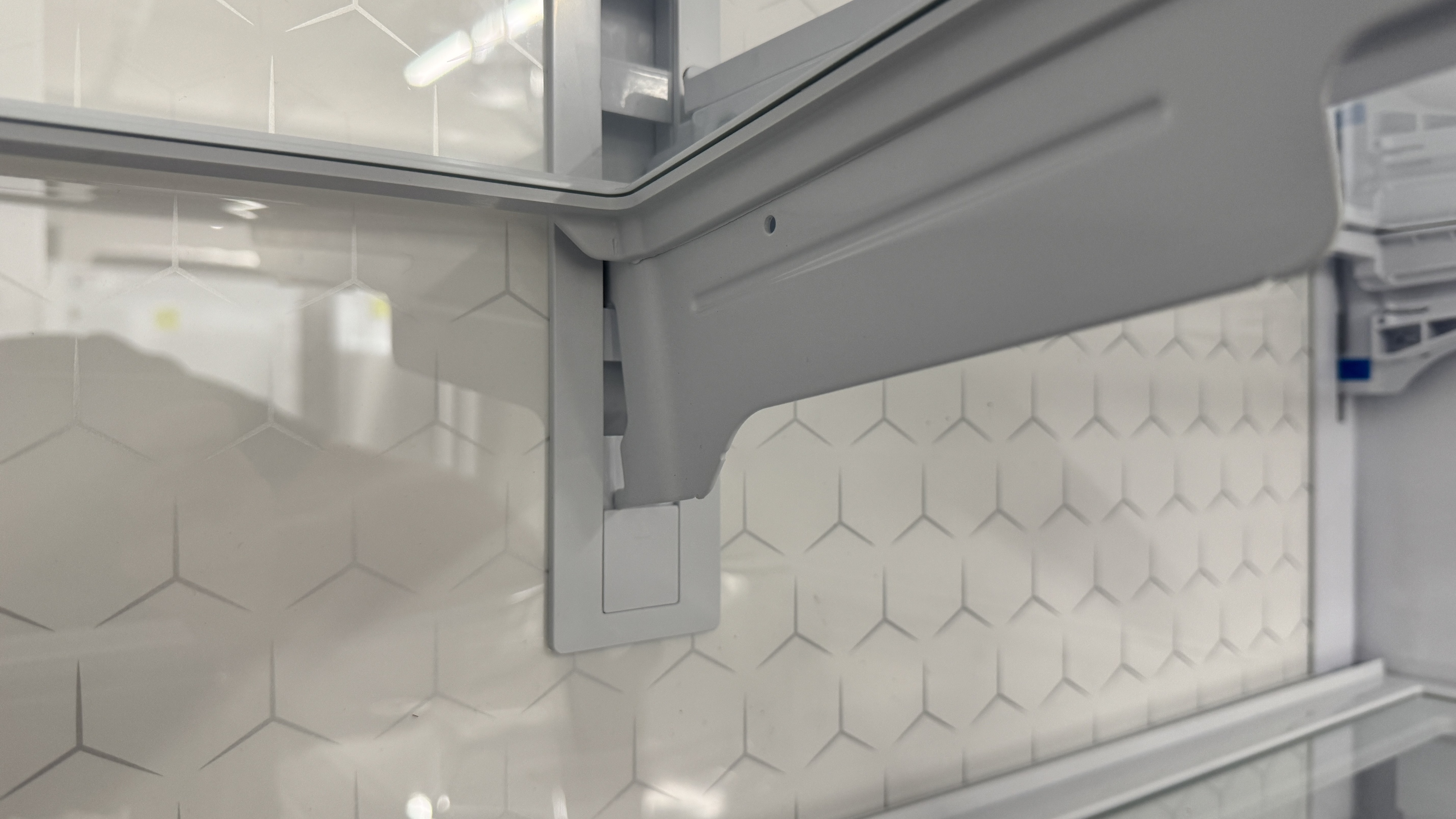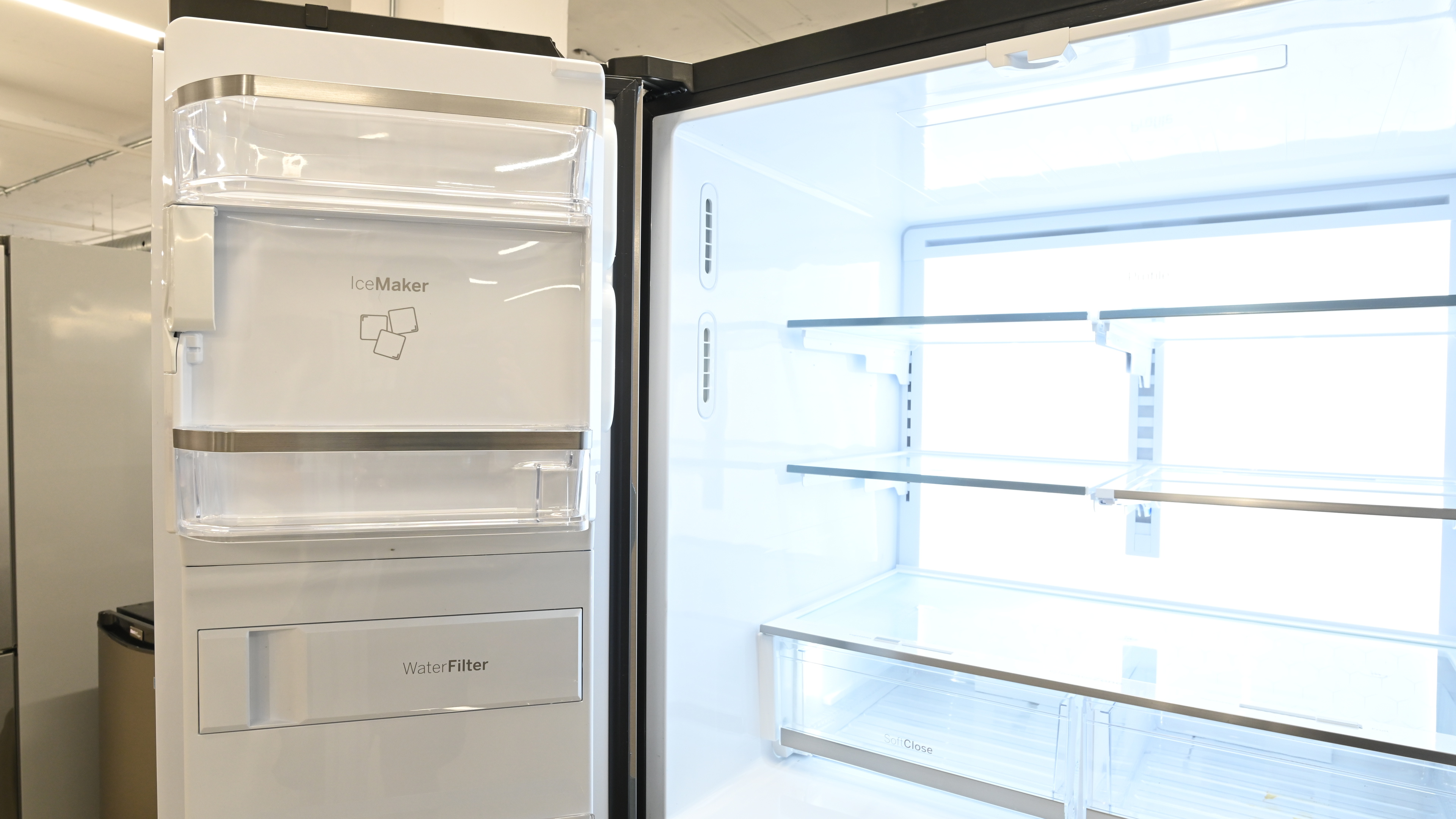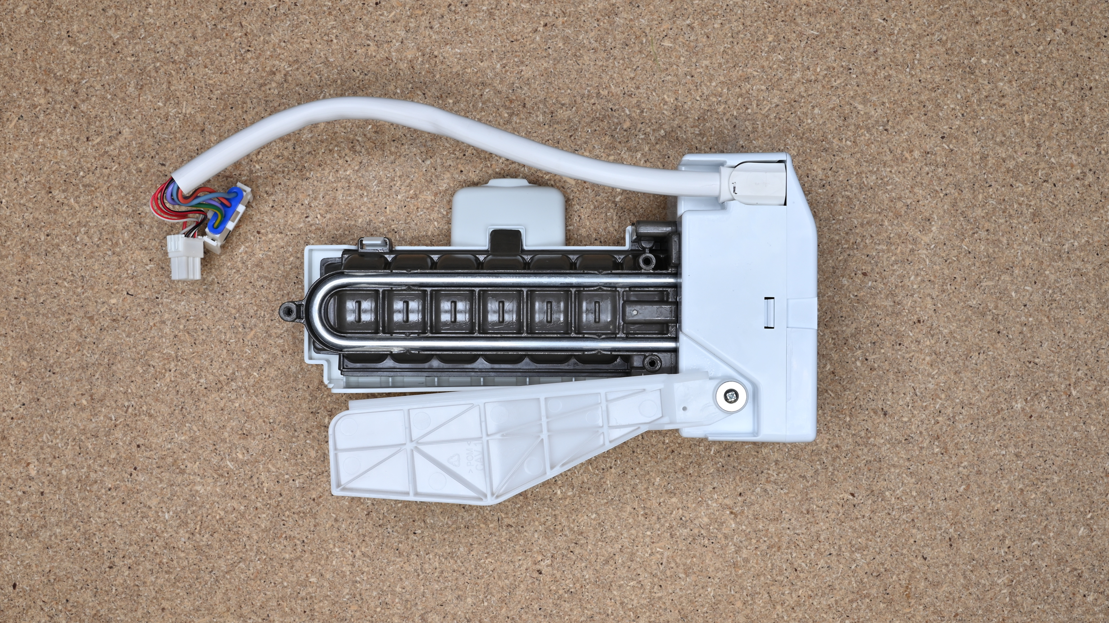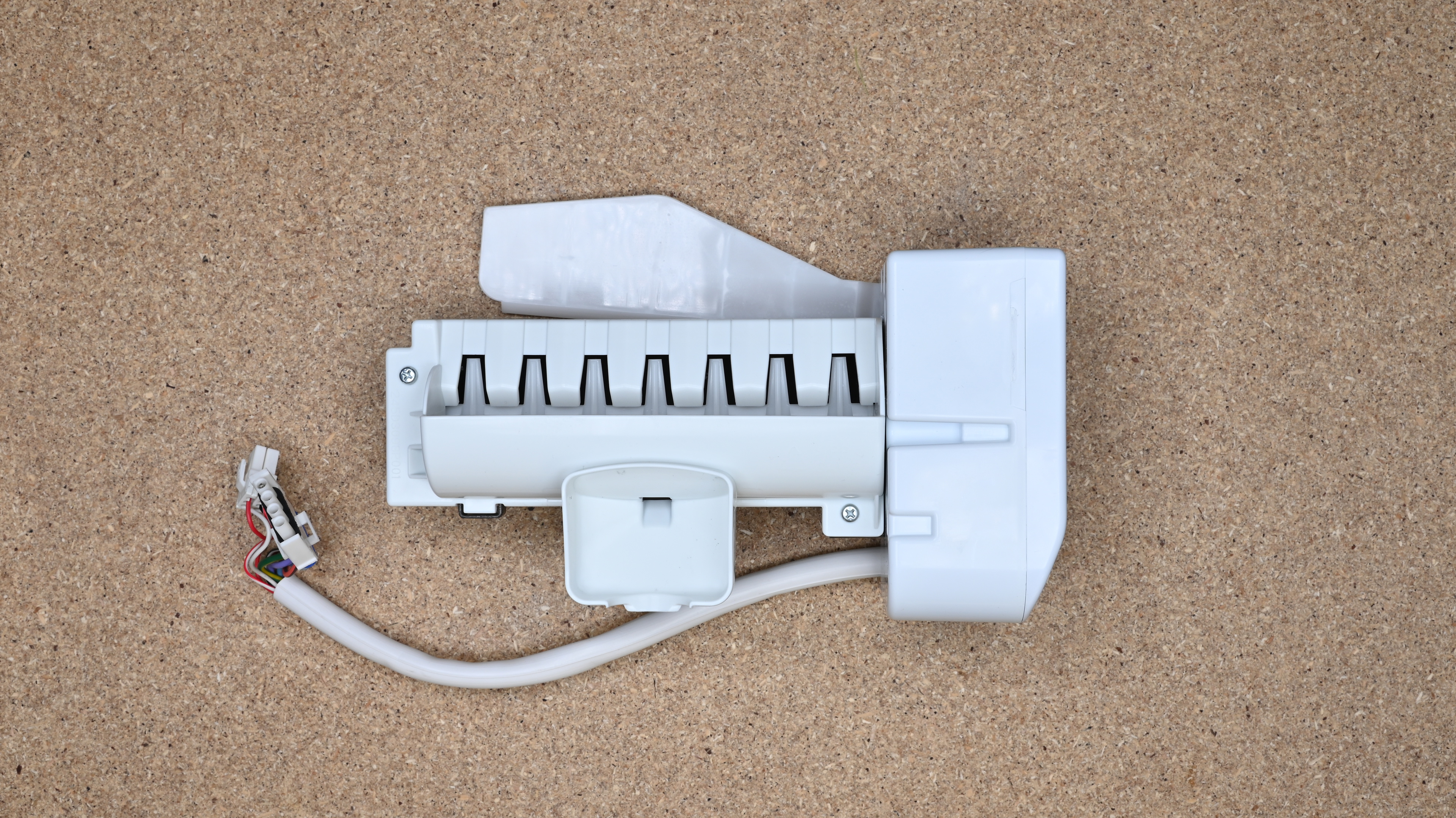 While the ice maker placement raises reliability concerns, its type doesn't. This fridge uses an ejector-type ice maker that utilizes a metal mold and a plastic rake to eject ice cubes after a heater detaches them from the mold. The ejector design is more reliable than the twist-tray type, which twists a plastic tray to detach the ice cubes. The plastic tray can get brittle over time, especially in freezing conditions, causing the plastic to crack.