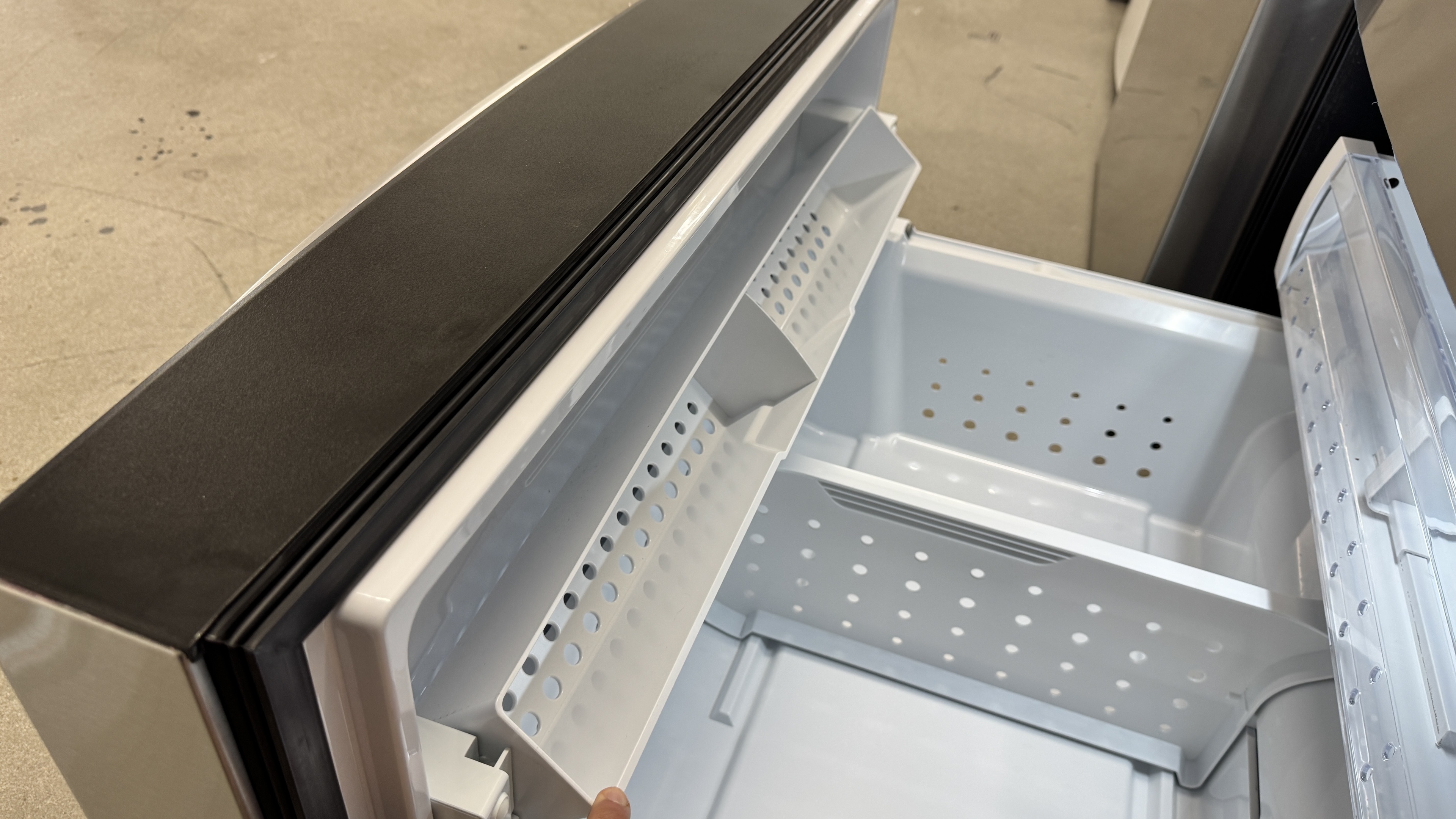 The GE Profile PVD28BYNFS does a decent job preserving produce. The dedicated evaporator in the fridge keeps humidity high, reducing evaporation, but the crisper drawers don't retain humidity well. They don't seal in moisture at a higher level than the rest of the fridge, so produce dries out, leading to wilted leafy greens and soft celery in a shorter span of time than it should for a fridge with an evaporator just for the refrigerator.