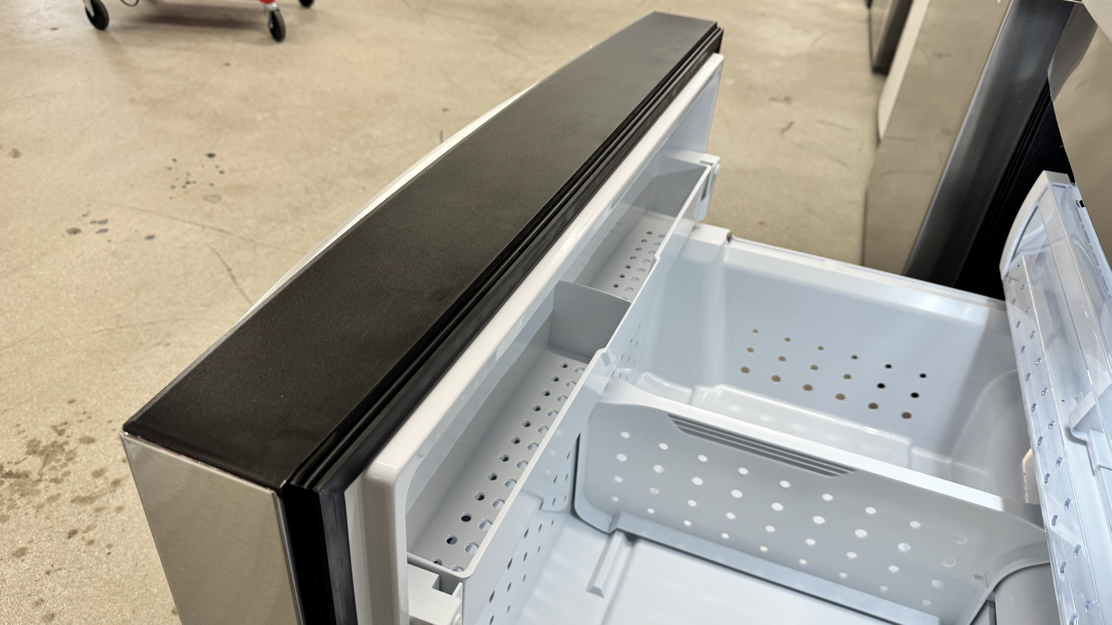 The GE Profile PVD28BYNFS is an upper mid-range French-door refrigerator. It packs in a lot of eye-catching features, like a door-in-door storage compartment for beverages, a temperature-controlled pull-out drawer, independent of the fridge and freezer cabinets, twin evaporators, and an in-door water and ice dispenser. It also boasts high-capacity fridge and freezer cabinets. That said, its nifty door-in-door storage solution heavily compromises its ability to maintain a consistent temperature in the door bins next to the otherwise-similar GE Profile PGE29BYTFS. Beyond that, while its twin-evaporator design would help keep delicate produce crisp for longer by maintaining a high humidity level in the fridge cabinet, the PVD28BYNFS is comprehensively outperformed in this respect by the single-evaporator Bosch 500 Series B36FD52SNS. The latter simply has better-sealing crisper drawers that retain more moisture.