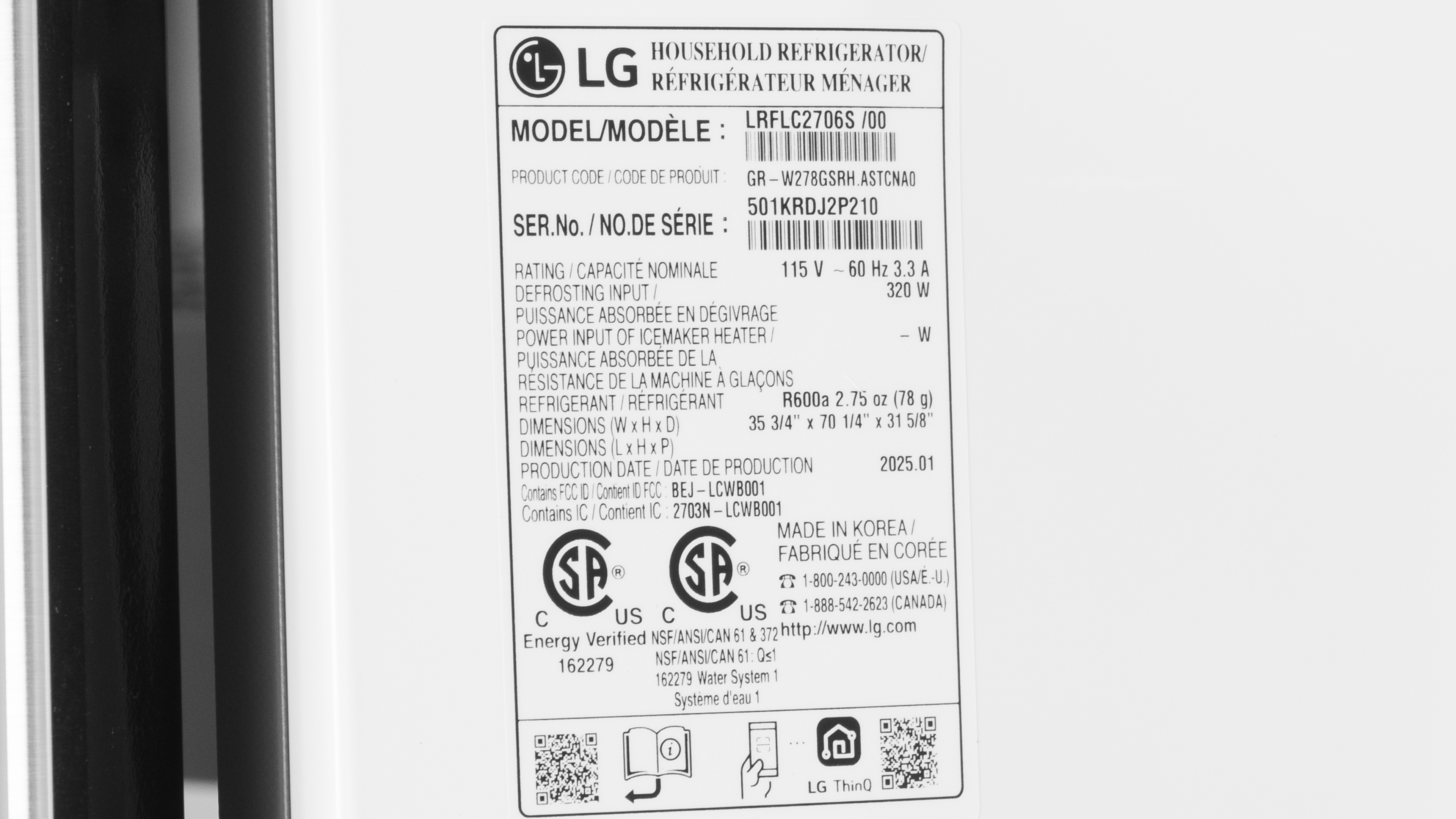 Where the LG LRFLC2706S really excels for a counter-depth fridge is capacity. It has more usable space than most 36-inch counter-depth refrigerators, including the KitchenAid KRQC506MPS and the Bosch 800 Series B36CT80SNS. Its freezer is also quite capable, with more capacity and better temperature uniformity than the standard-depth GE Profile PVD28BYNFS. Unfortunately, its produce preservation performance is mediocre, much worse than the Bosch 500 Series B36FD52SNS.