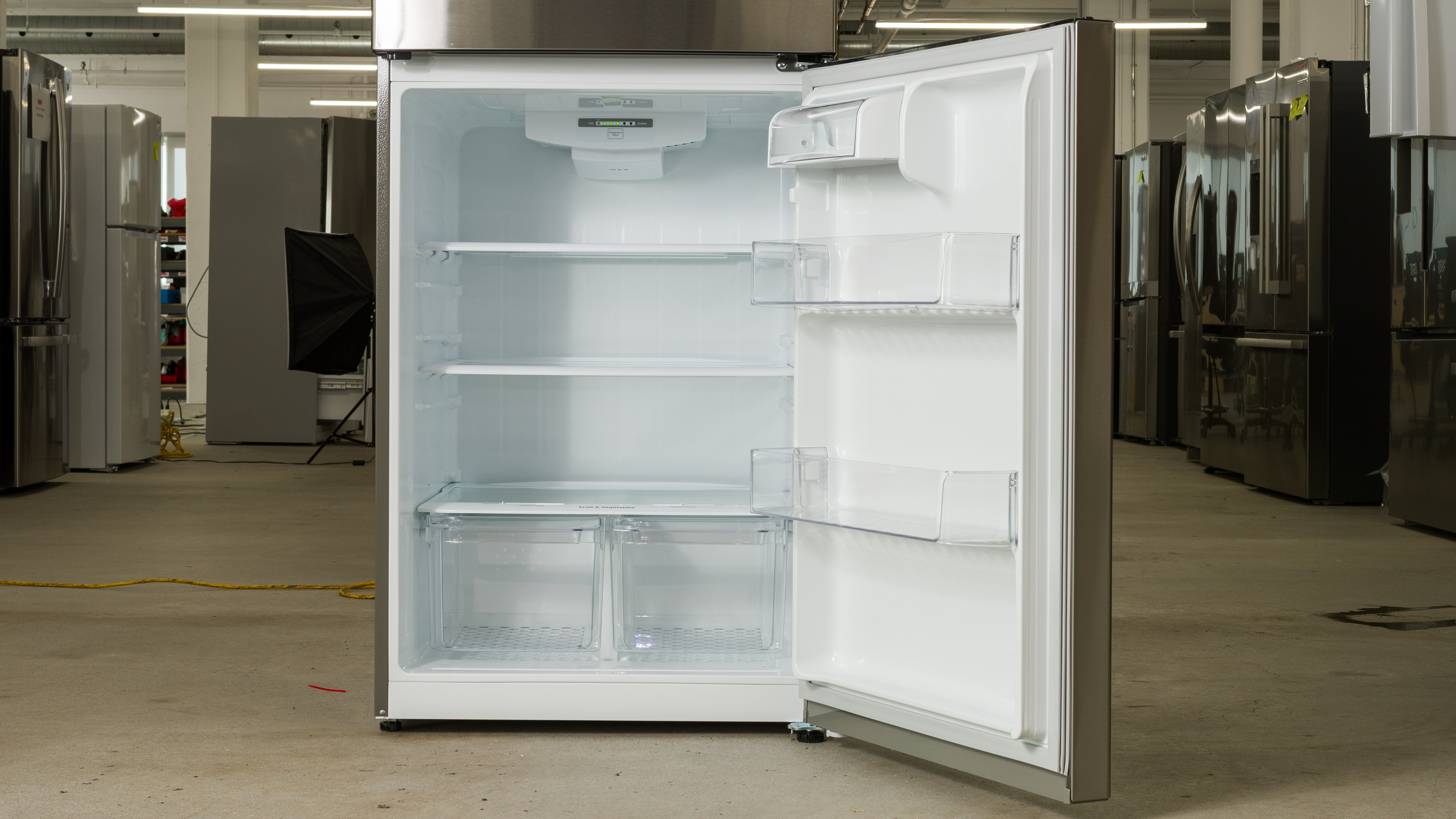 The LG LTCS20020S is a decent option for everyday use. Its produce preservation performance outperforms other budget fridges, so it'll keep leafy greens wilt-free for longer than most refrigerators. It offers decent capacity in the fridge and freezer; though the storage arrangement is very simple, you'll have space to store large, wide, or tall items like bottles or pizza boxes. The temperature uniformity in the fridge and freezer is satisfactory, but the door bins are fairly warm, so you should only use these as a chiller to store canned beverages, condiments, and shelf-stable sauces.