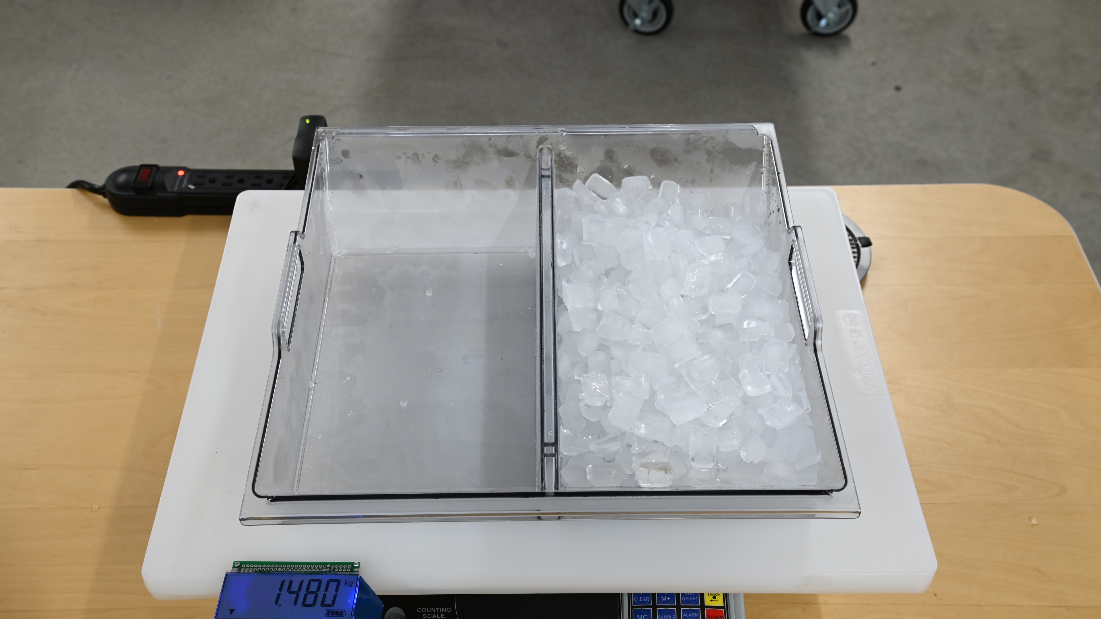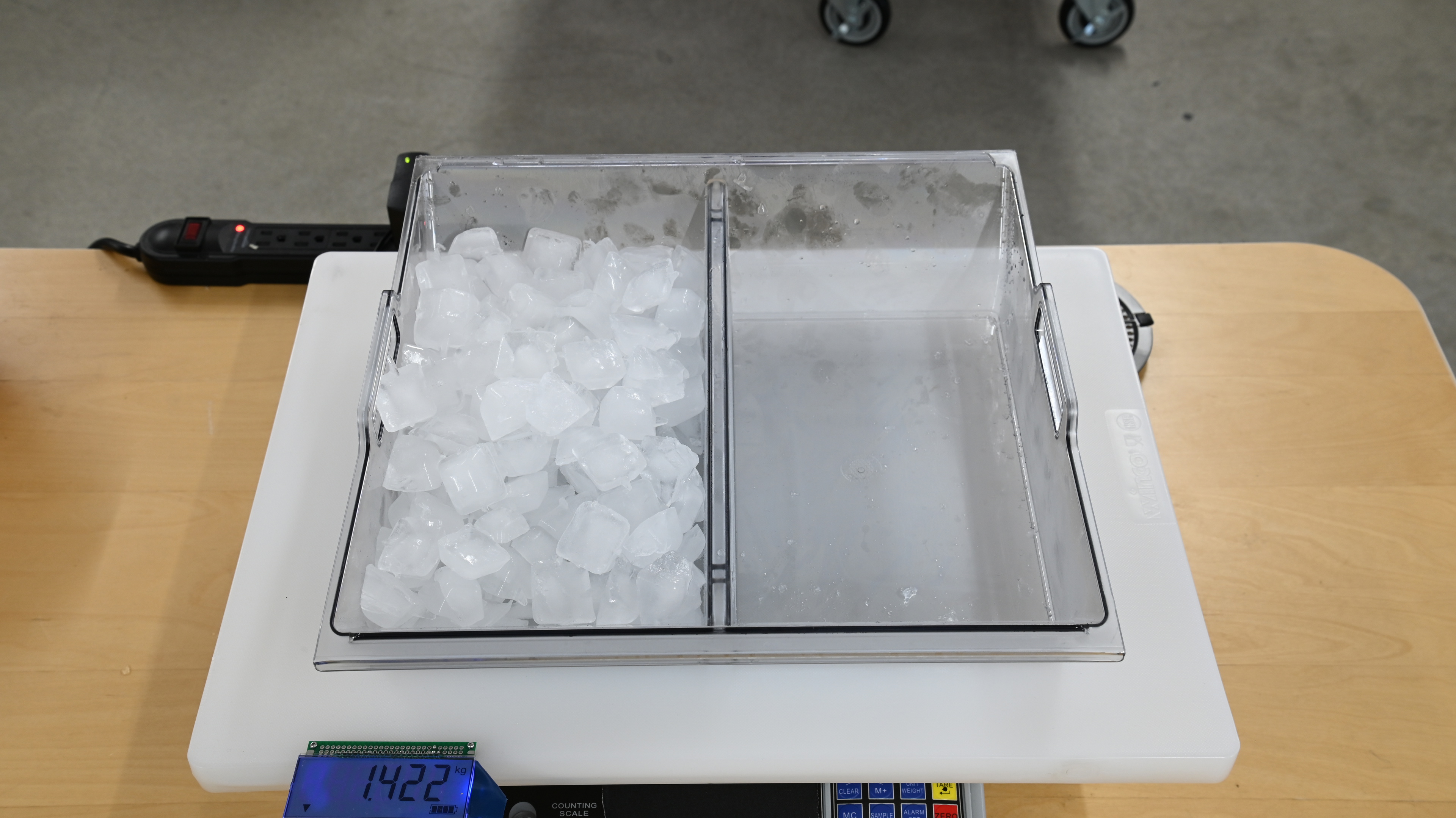 Note: The high sensitivity of our test scale makes it difficult to obtain consistent measurements at a really granular scale: the combined weights of both ice types put together total 2,902 g (6.40 lbs), a hair more than the measured combined total of 2,895 g (6.38 lbs).