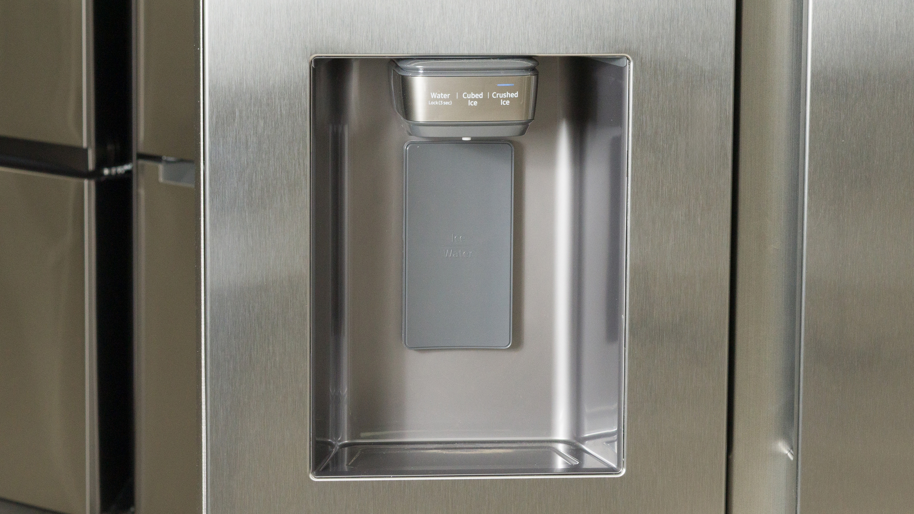 The Samsung RS27T5200SR has a combination filtered water and ice dispenser built into its freezer door. There's no built-in light when triggering the dispenser itself, which can make it a bit of a gamble to fill a glass in the dead of night in an unlit kitchen.