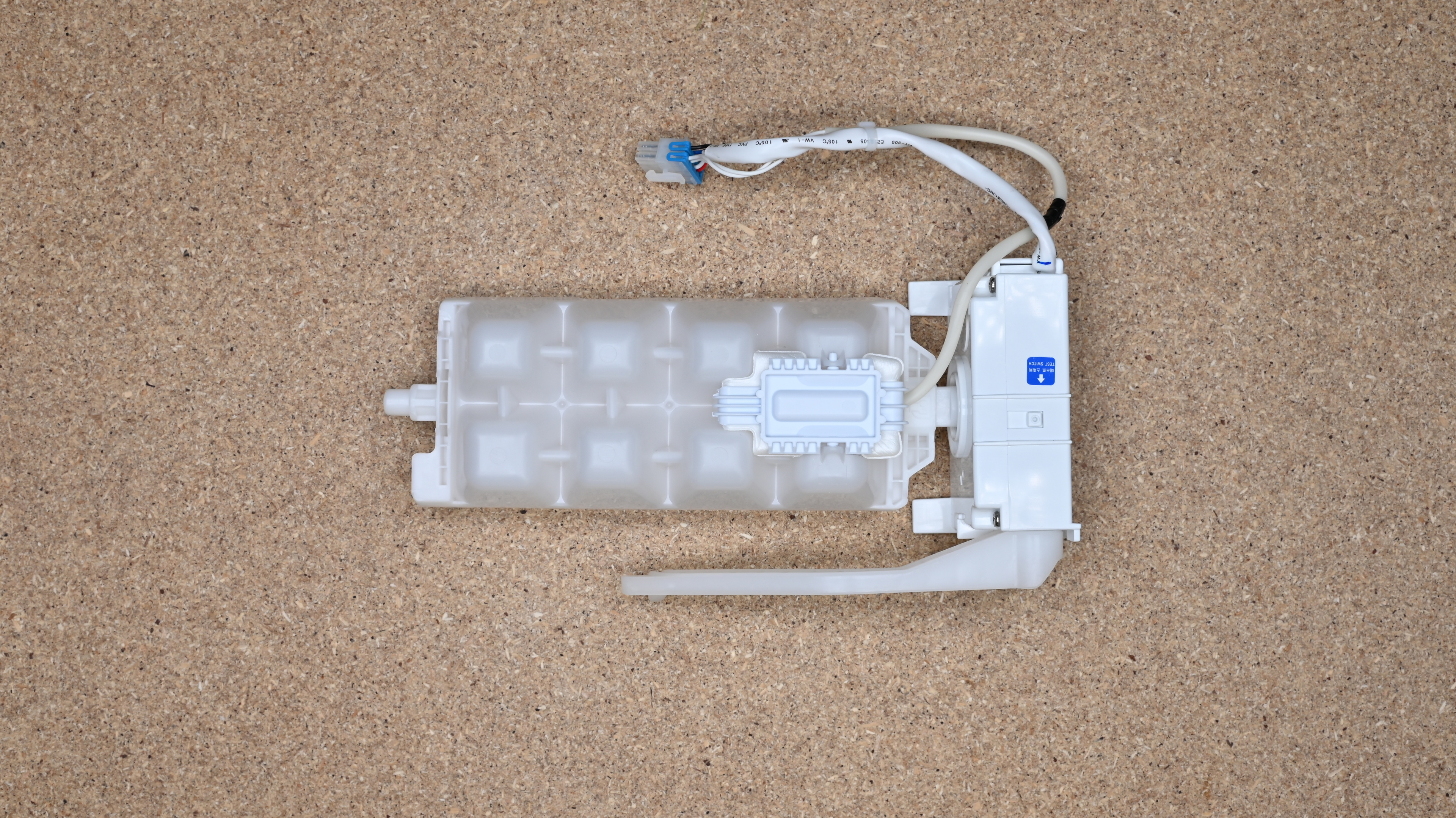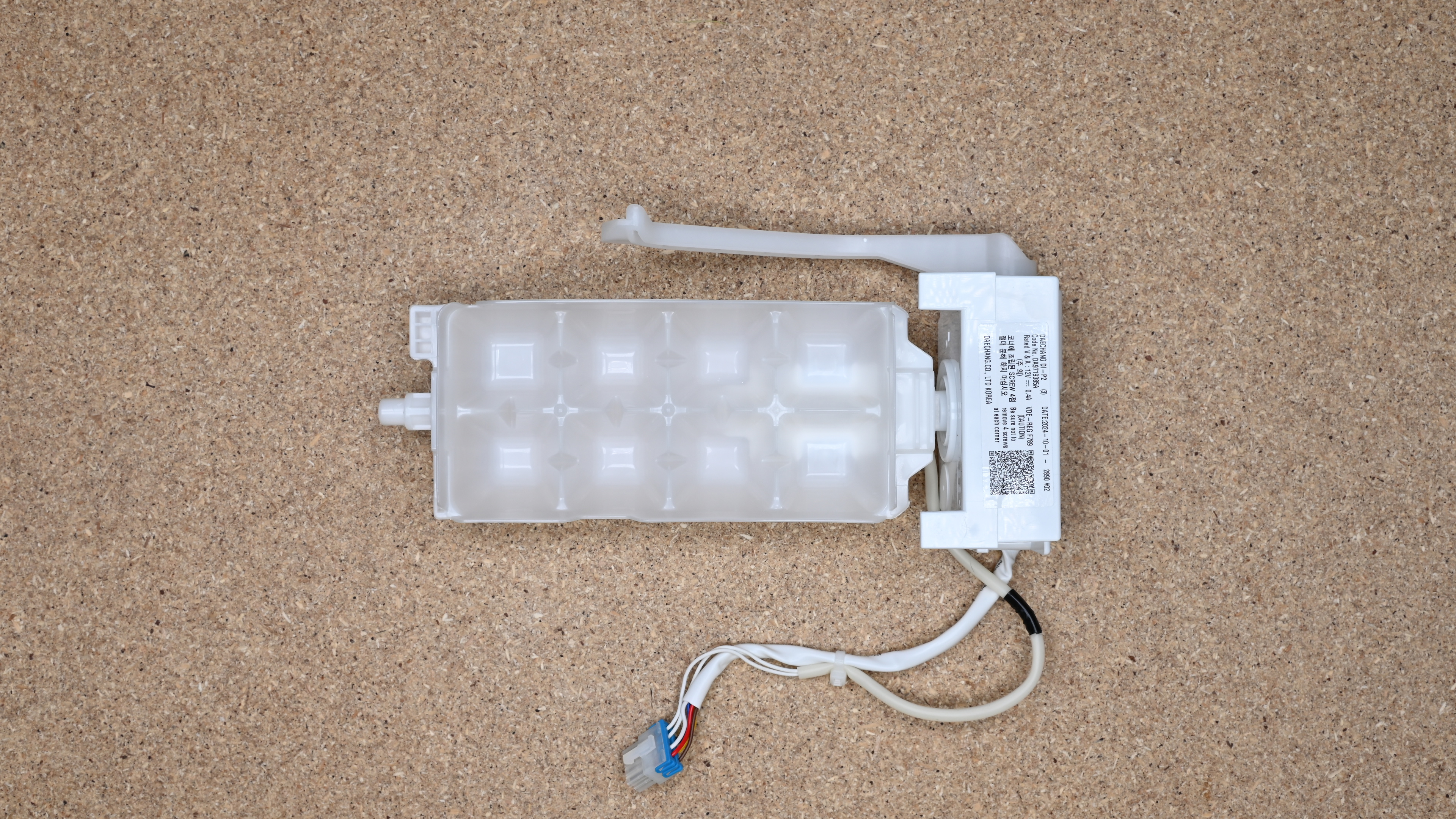 This refrigerator's ice maker has a twist-tray design. It has a nearly identical design to the Whirlpool WRS588FIHZ, with the ice maker and ice bucket built into the freezer door rather than the cabinet to save space. As a twist-tray model, you can expect a shorter overall operating life than an ejector-style unit. Twist-tray models work how they sound, with a motor twisting their ice mold to force ice out of it. This mold can be rendered brittle and crack due to the freezing ambient temperatures and constant mechanical stress. Conversely, ejector-style models use a more robust metal mold heated by a separate element to release the ice inside; this generally tends to be a more durable design in the long run.