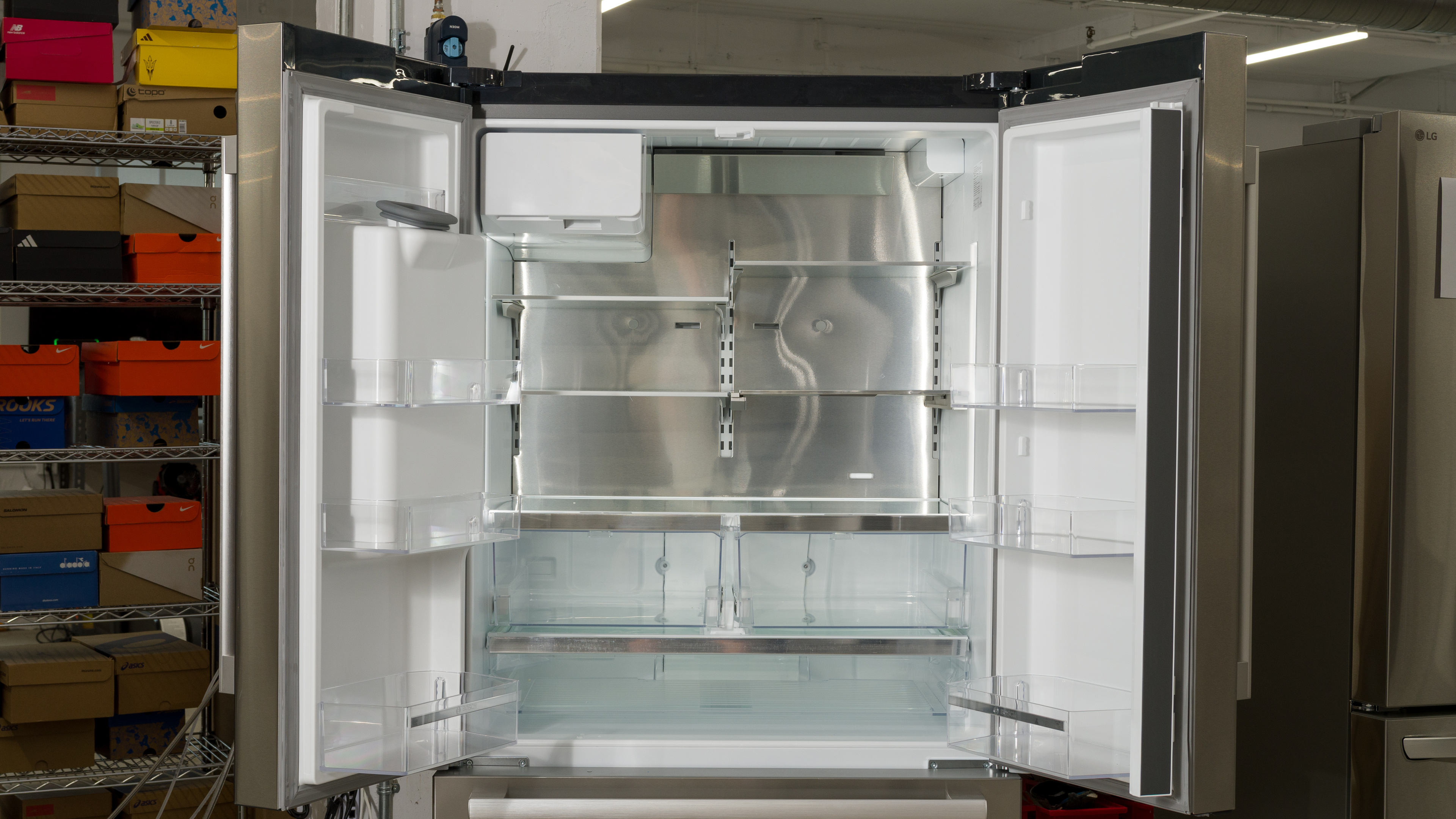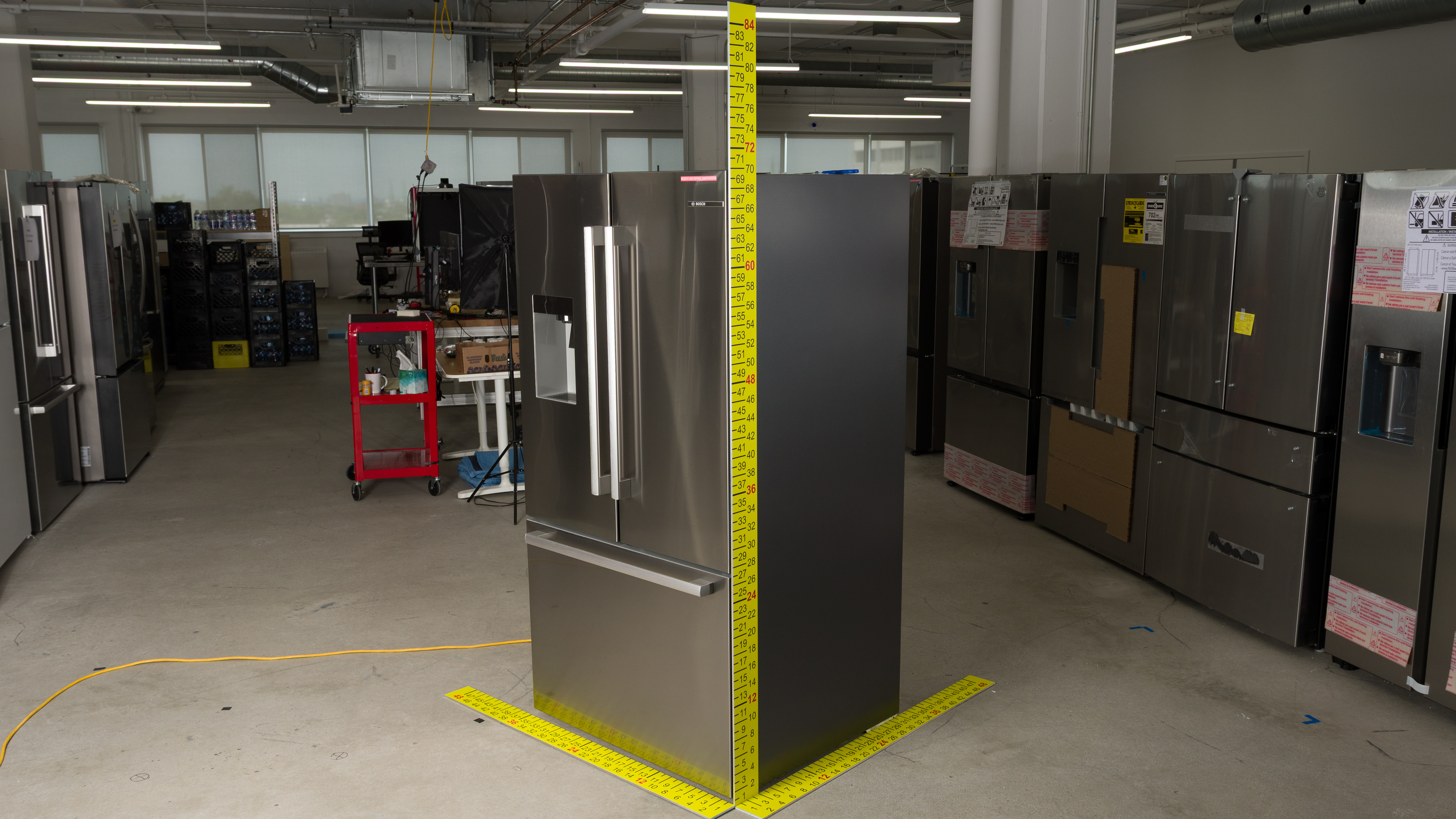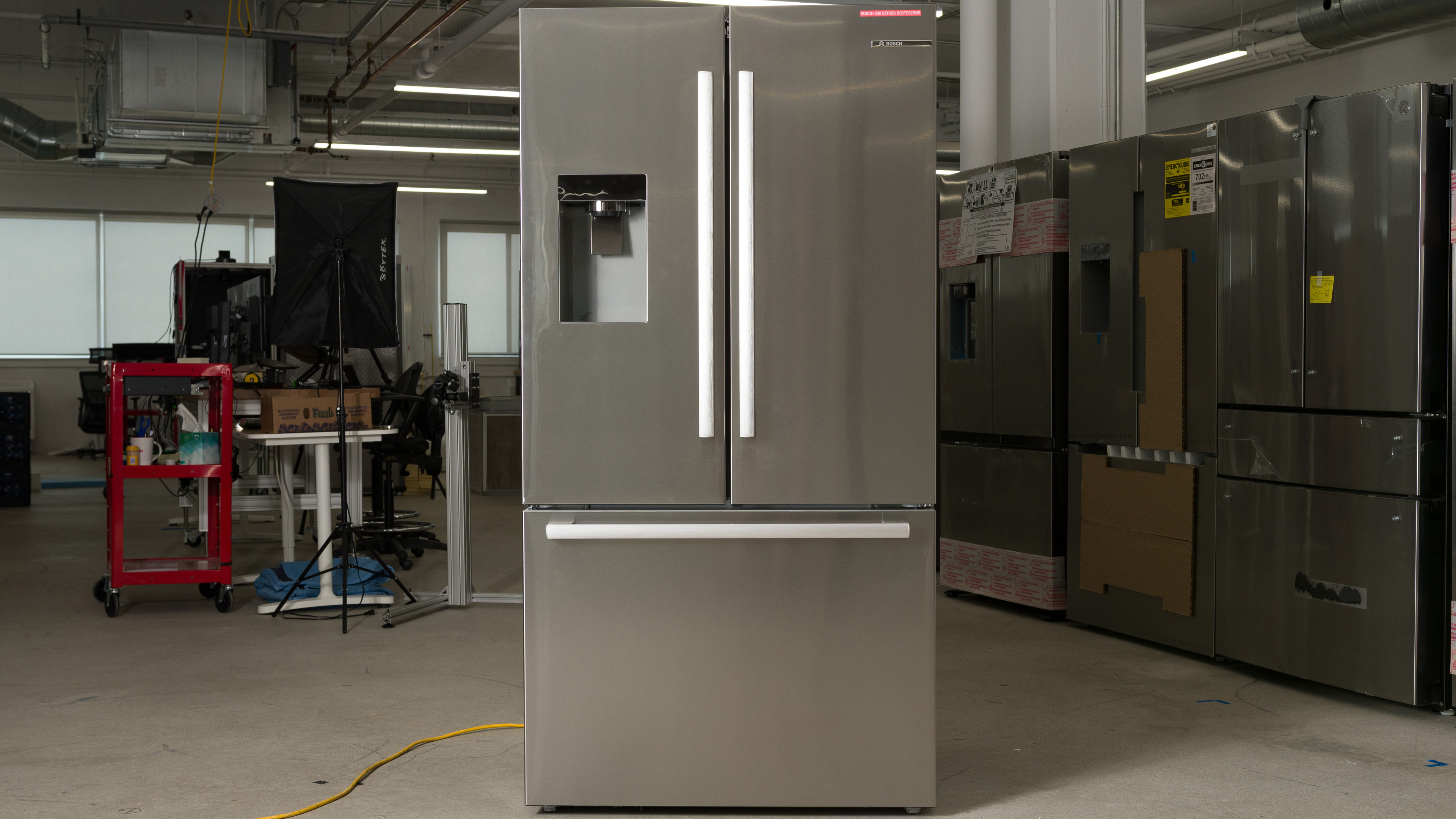 The Café CGE29DP2TS1 is a slightly better fridge than the Bosch 500 Series B36FD52SNS. The Café has dual evaporators, leading to slightly better produce preservation performance despite the Bosch's excellent produce bin seal. The fridges perform quite similarly in most other respects, and even have very similar capacities. The Bosch does have an externally accessible in-door ice and water dispenser, though.