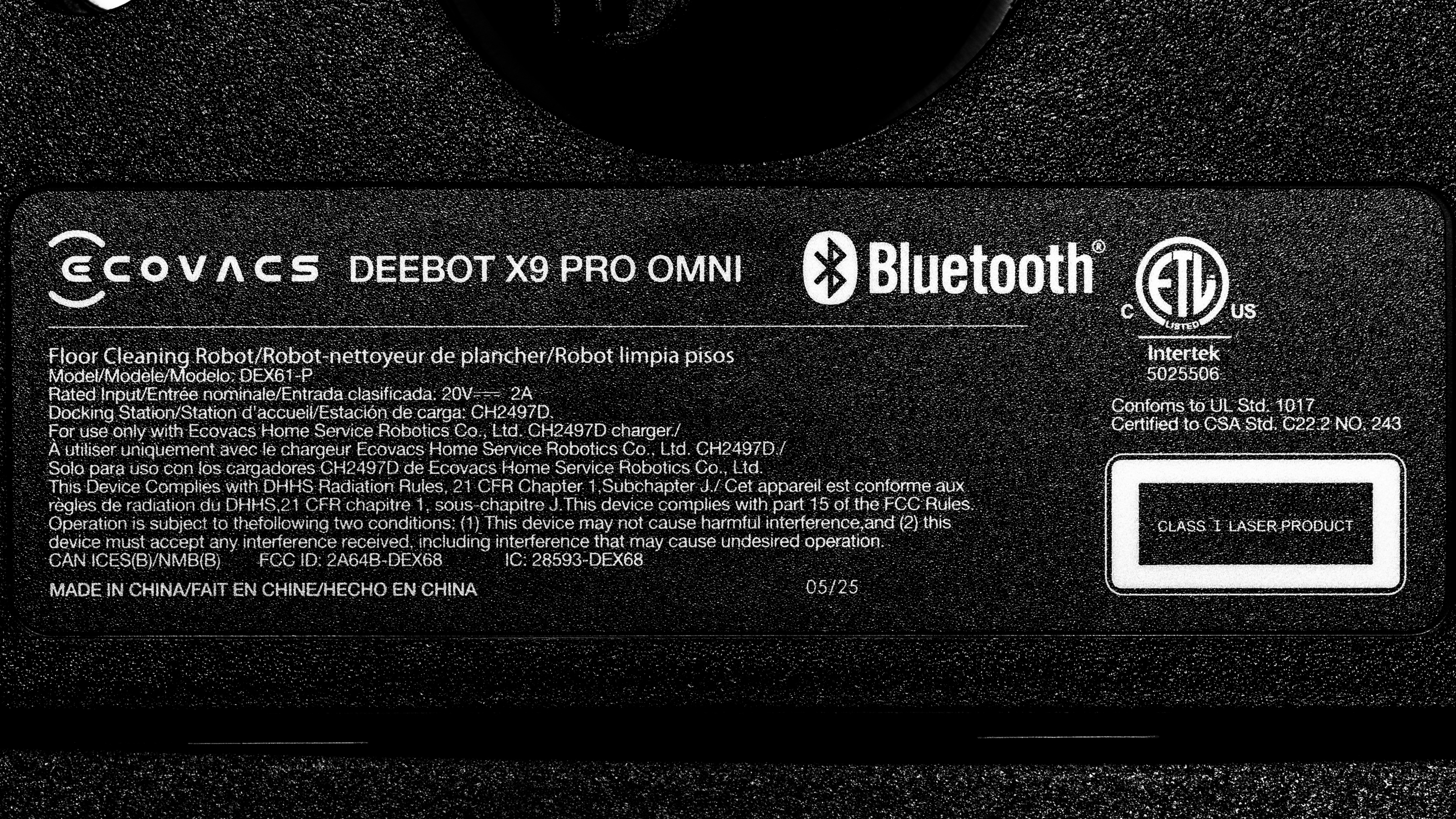 The Ecovacs DEEBOT X9 PRO OMNI robot vacuum comes in one variant, available in black, which we bought and tested. Here's a photo of our unit's label.