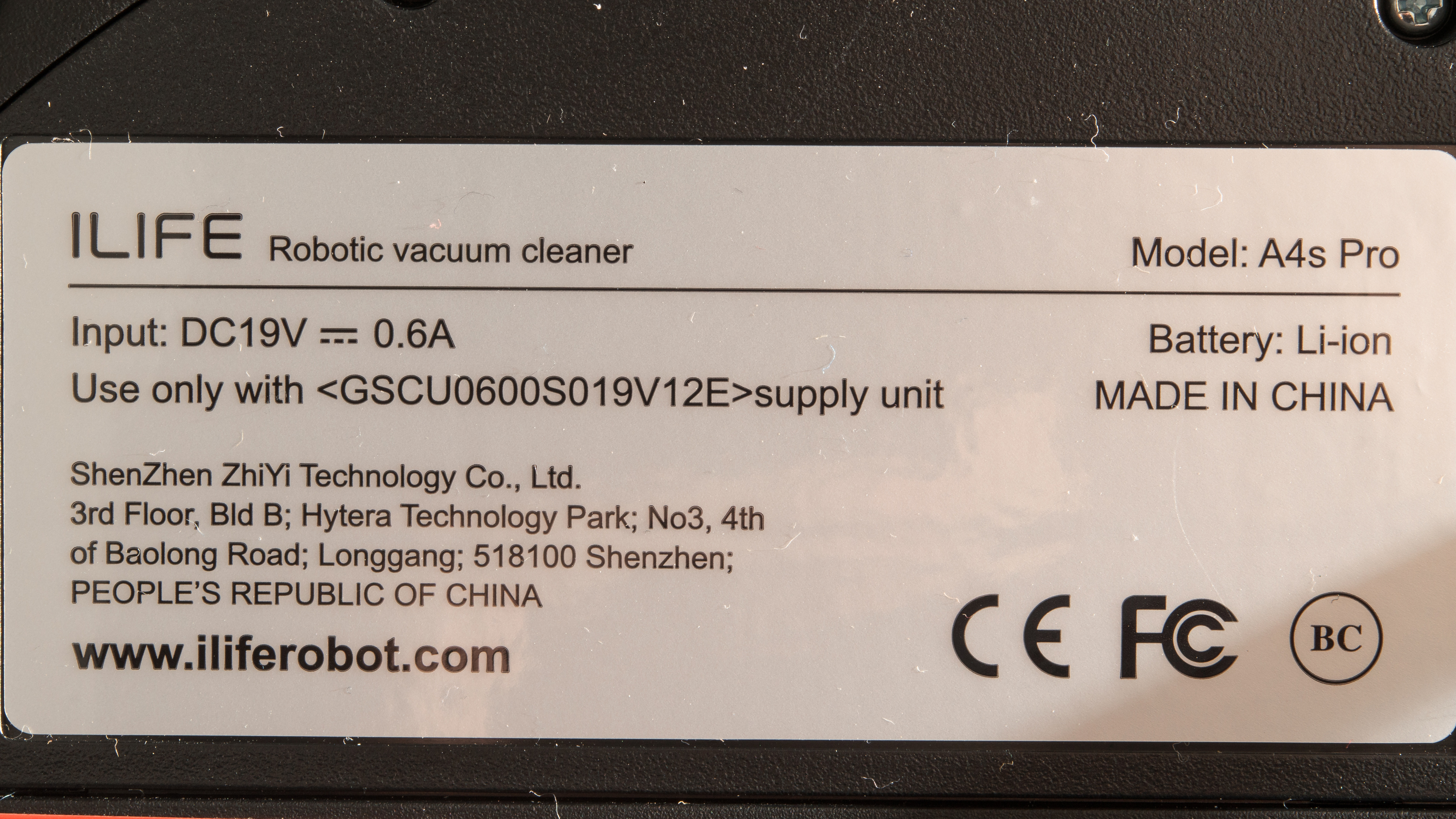 There are three variants of the ILIFE A4s: the basic A4s, the mid-range A4s Max, and the top-range A4s Pro, We tested the latter, and you can see its label here. The Max and Pro models have upgraded suction motors for improved deep-cleaning performance, though they're otherwise quite similar to the base model.
