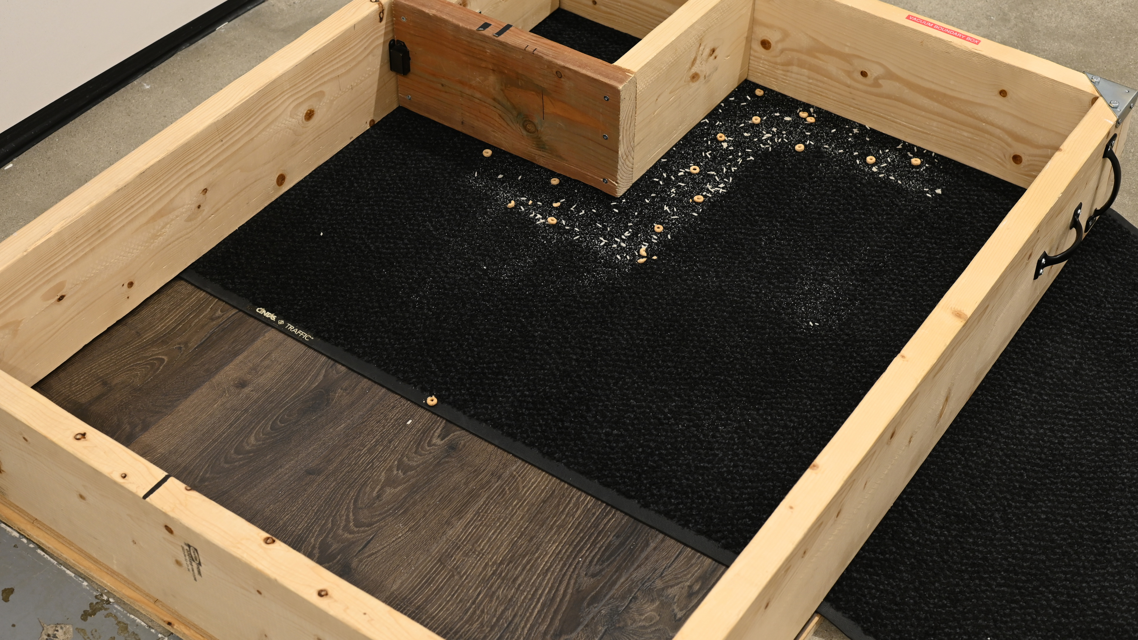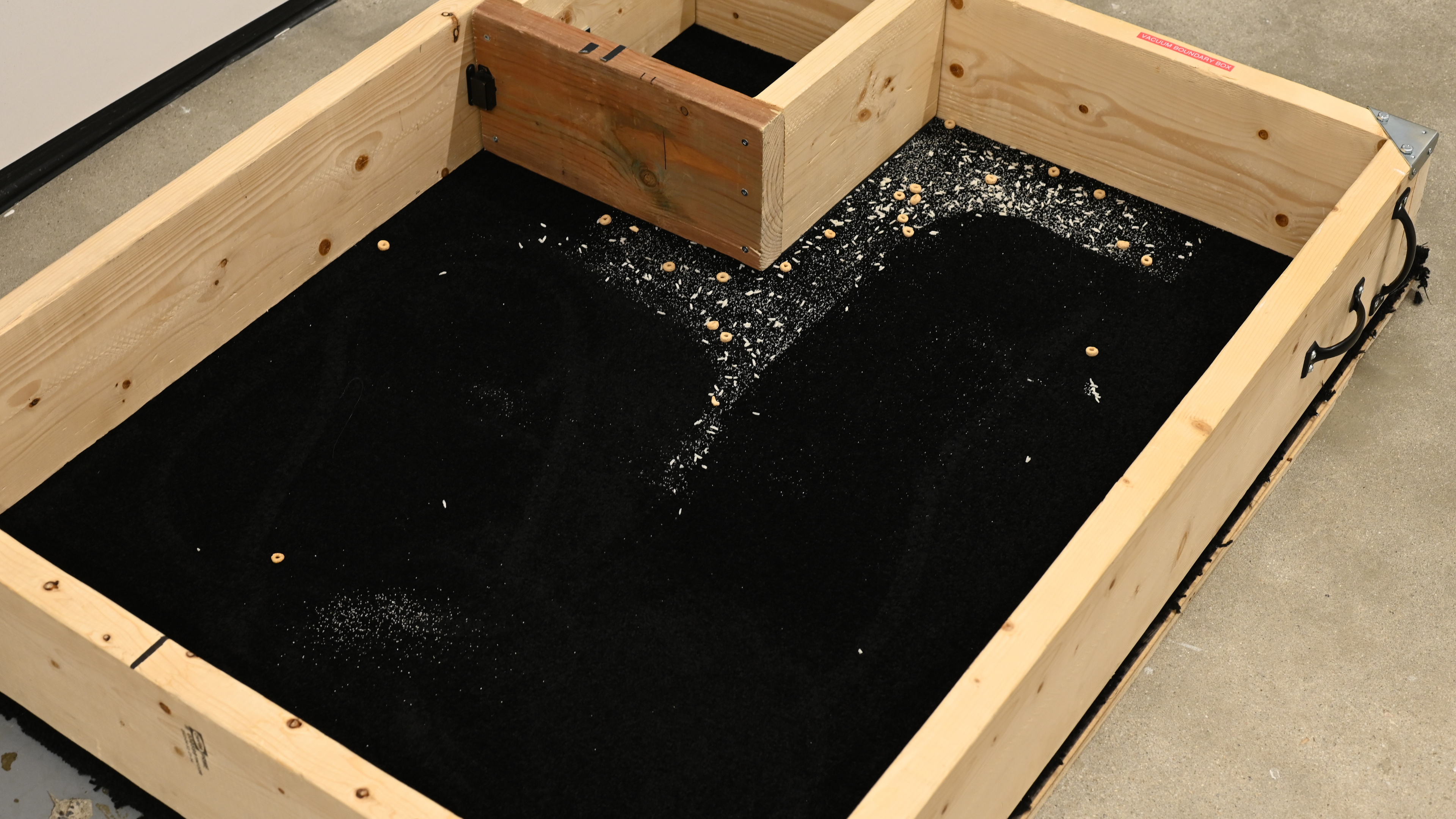This robot vacuum does a poor job on low-pile carpets with the Standard suction and pathing settings and Carpet Boost activated. It clears medium and large debris from its brushroll path but has difficulty removing fine material from the stiff, dense low-pile carpet fibers due to the low surface agitation of its brushroll. It doesn't use its side brush along walls or in corners, so it leaves all material in these areas.