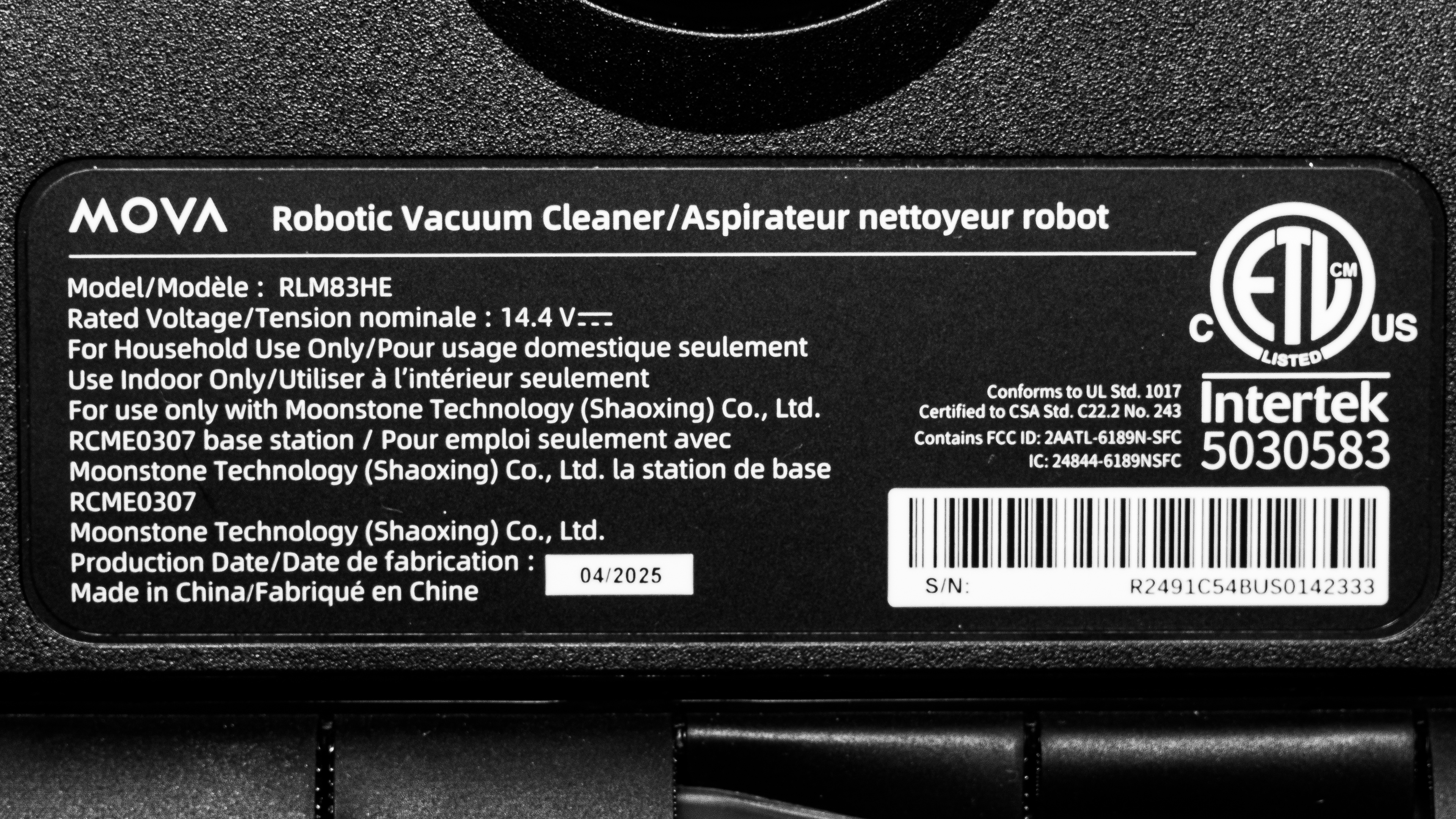 The MOVA P10 Pro Ultra has only one variant, and it's in white. Here's a photo of our unit's label.