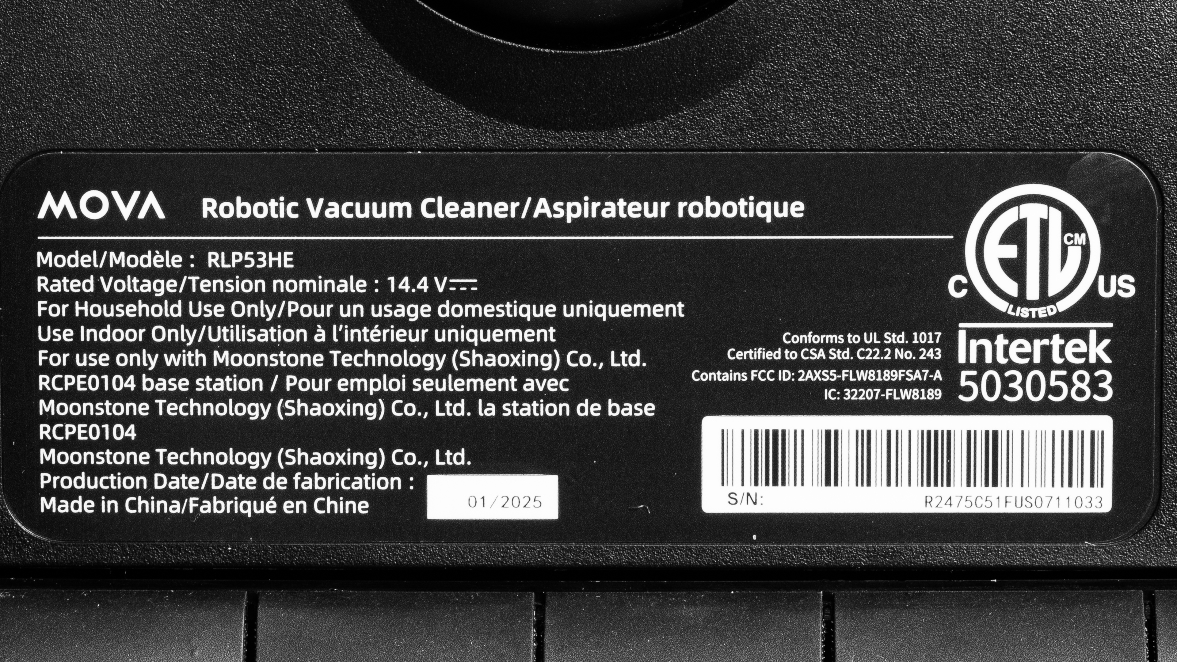 The MOVA P50 Pro Ultra only has one variant, which is available in two colorways: Black and White. We bought and tested the White version. Here's a photo of our unit's label.