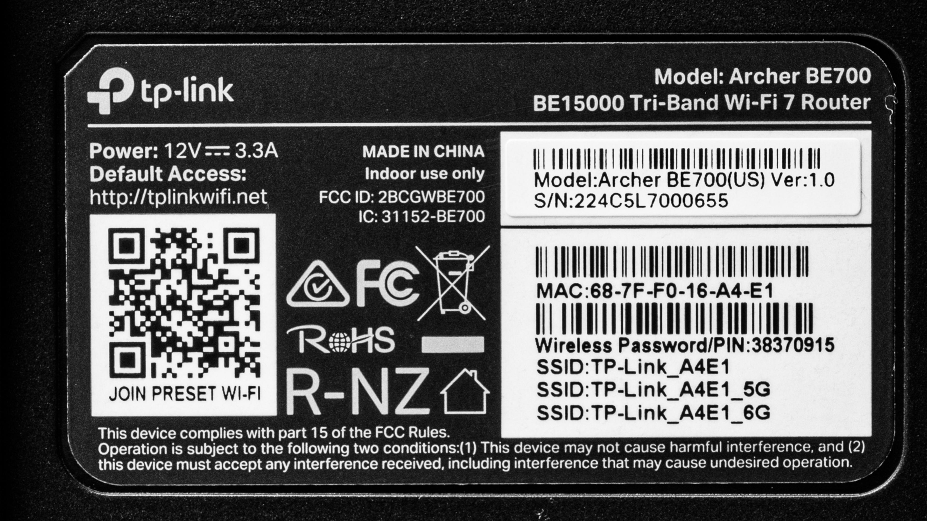 The TP-Link Archer BE700 doesn't have any variants. See a photo of our unit's label.