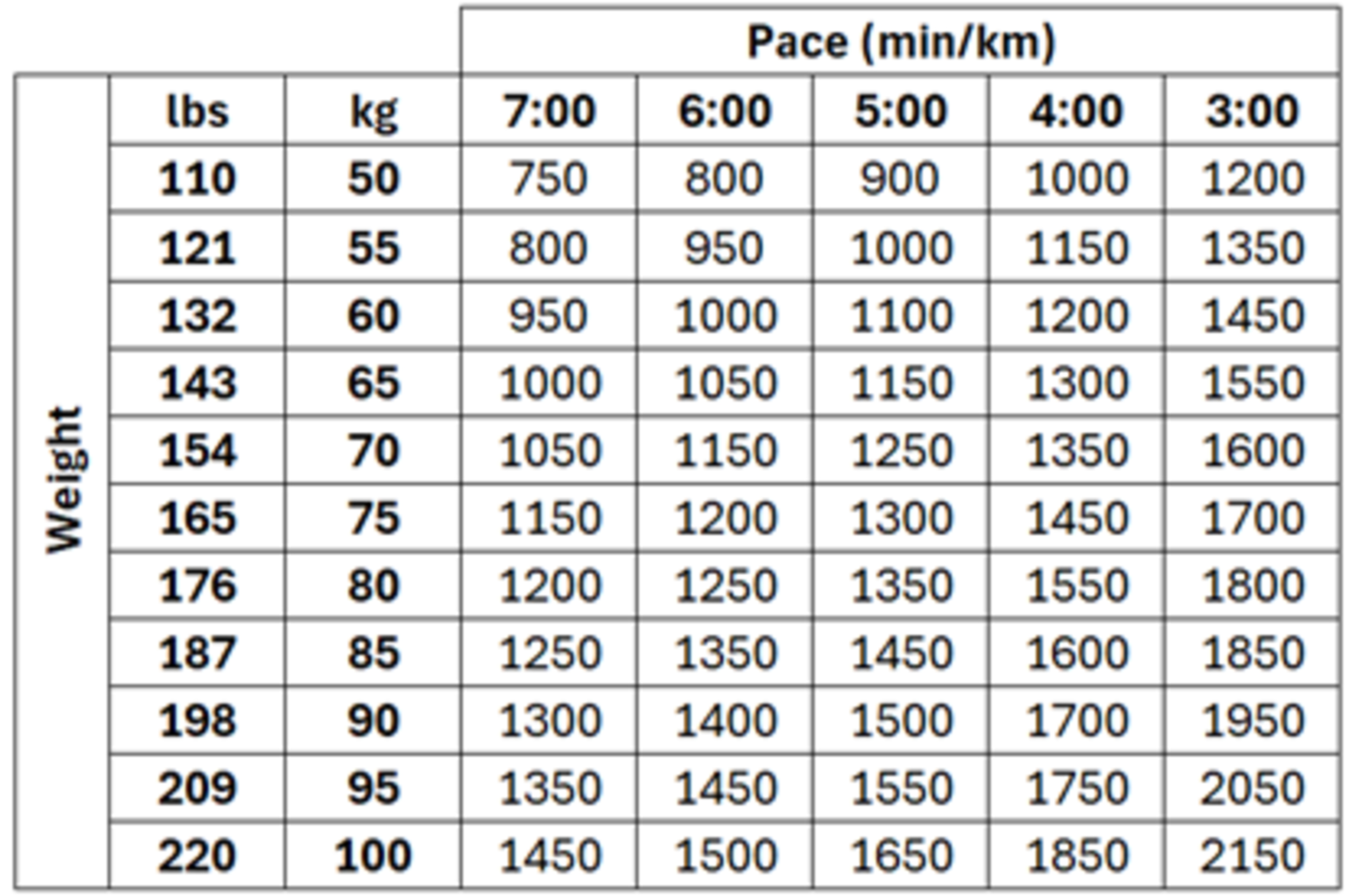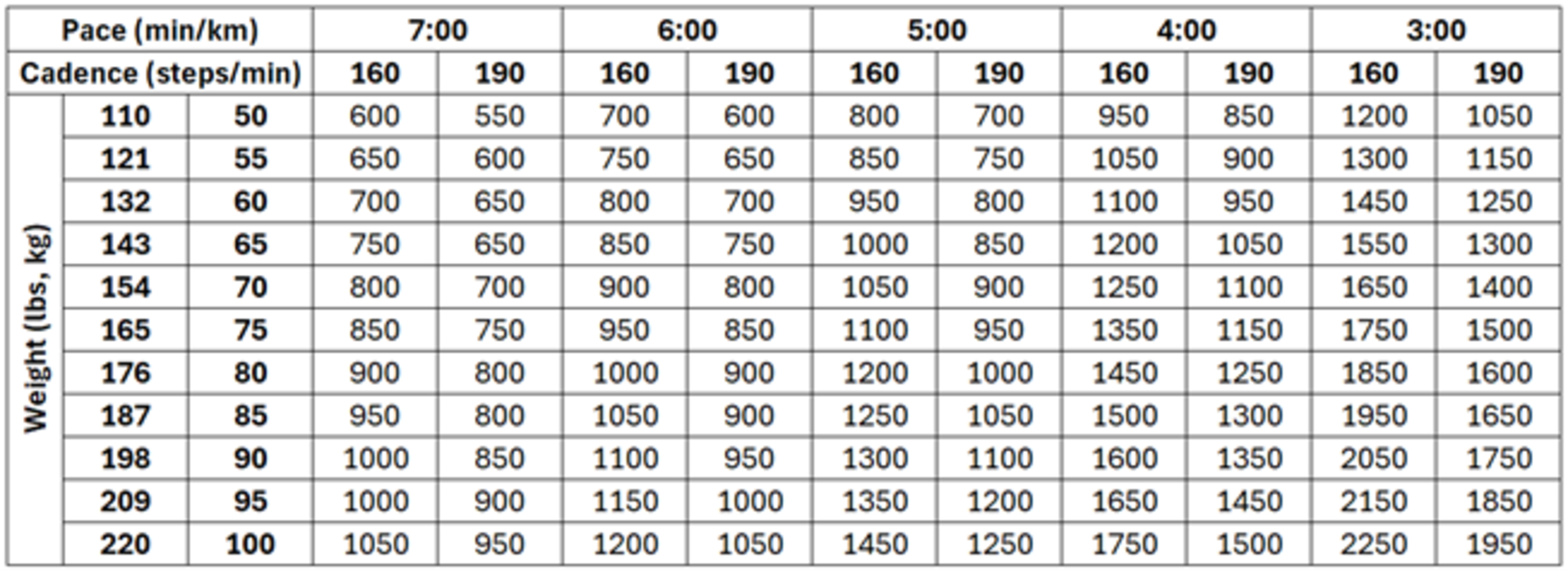 Note that speed is in km/h, weight is in kg, and cadence is in steps/min.