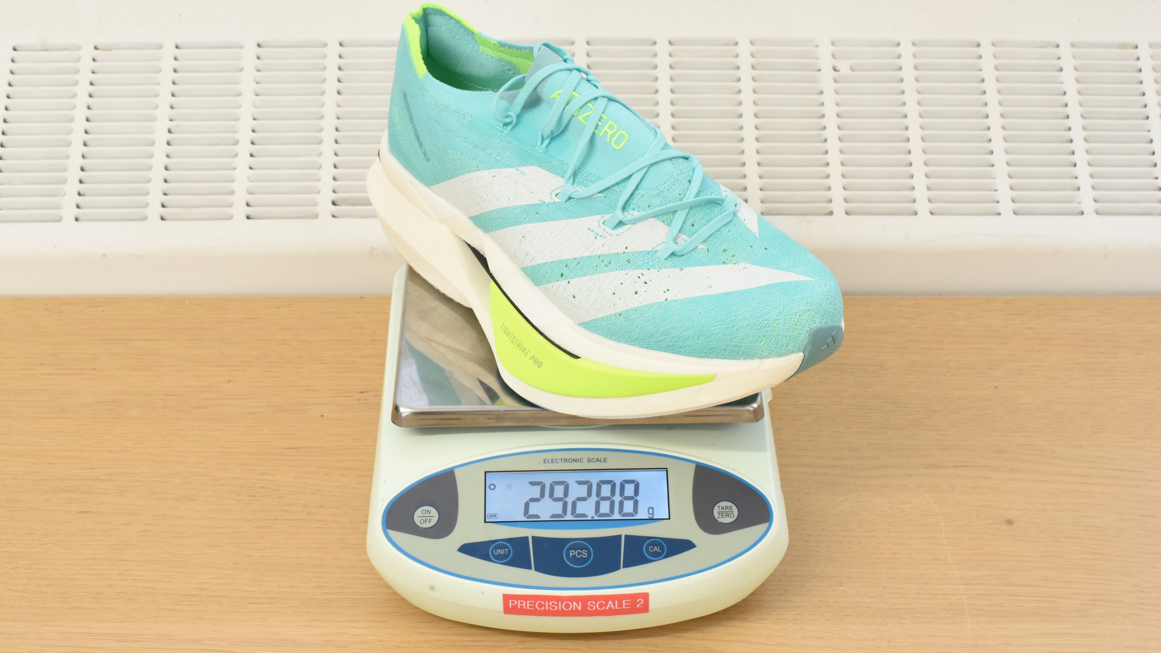 We bought and tested the adidas Adizero Prime X3 STRUNG in a men's US size 9, as noted on the label for our pair. The pair we purchased is the Flash Aqua/Zero Metallic/Lucid Lemon colorway, but you can also get the shoe in several other colorways, including Cloud White/Core Black/Lucid Red, Powder Plum/Aurora Black/Shock Pink, and Lucid Lemon/Core Black/Halo Silver, depending on the region. Both the men's and women's versions are only available in a standard width, with no dedicated narrow or wide options. The design section applies only to the exact model we tested, but we expect other size and gender variants to perform similarly.