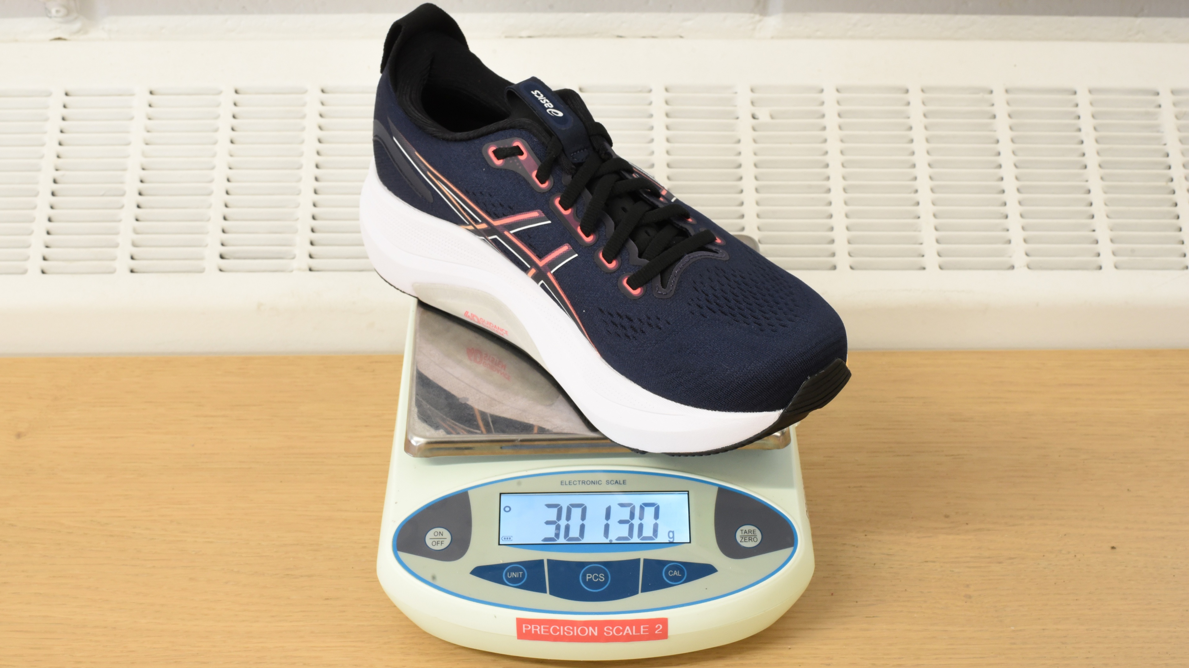 This shoe tips the scales on the heavy side and is just a touch more than the previous ASICS GEL-KAYANO 31. You feel that heft when picking up the shoe, and it makes for an inefficient and cumbersome sensation underfoot.