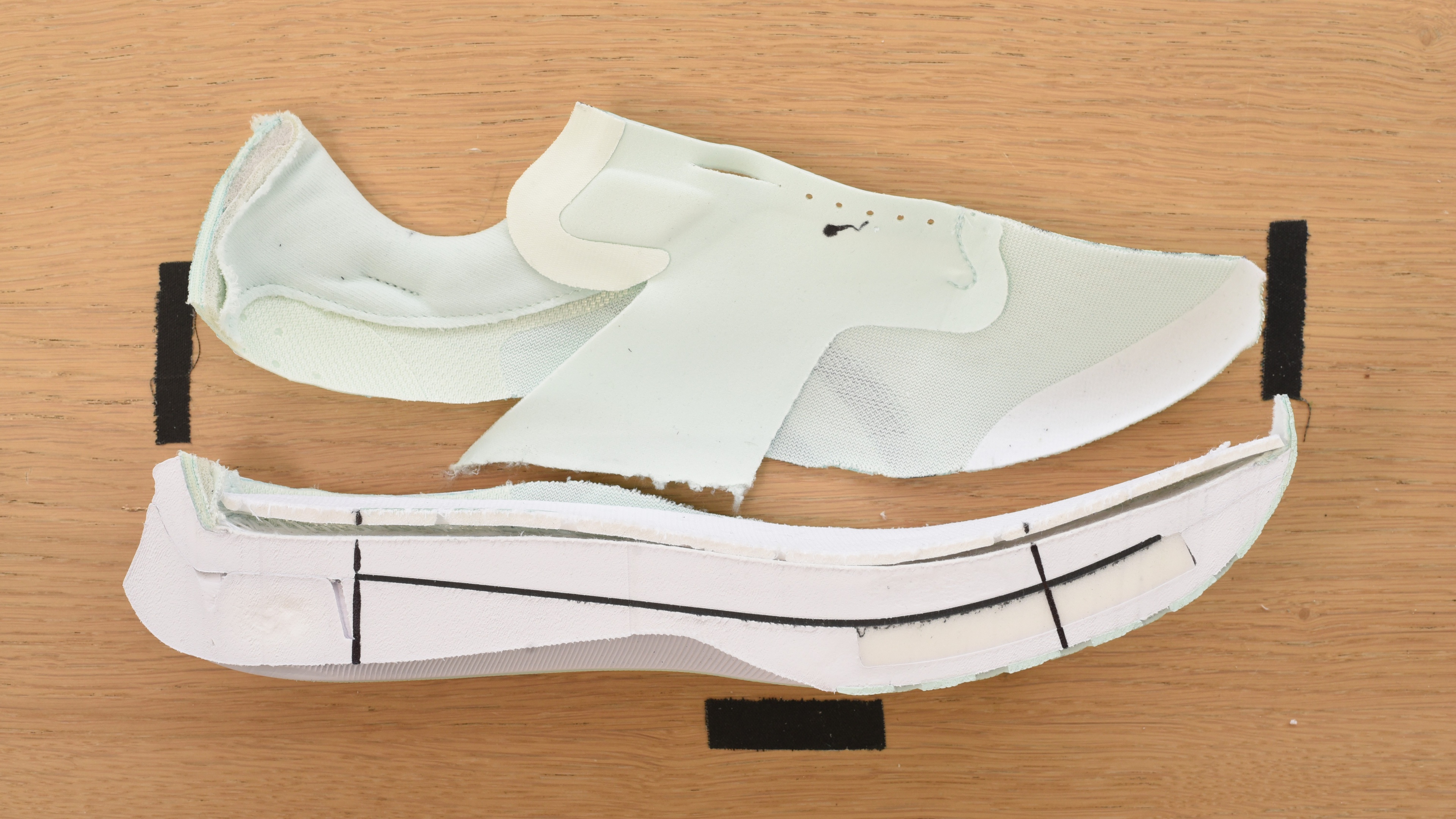 Full-length carbon plate helps to stabilize the two layers of foam.