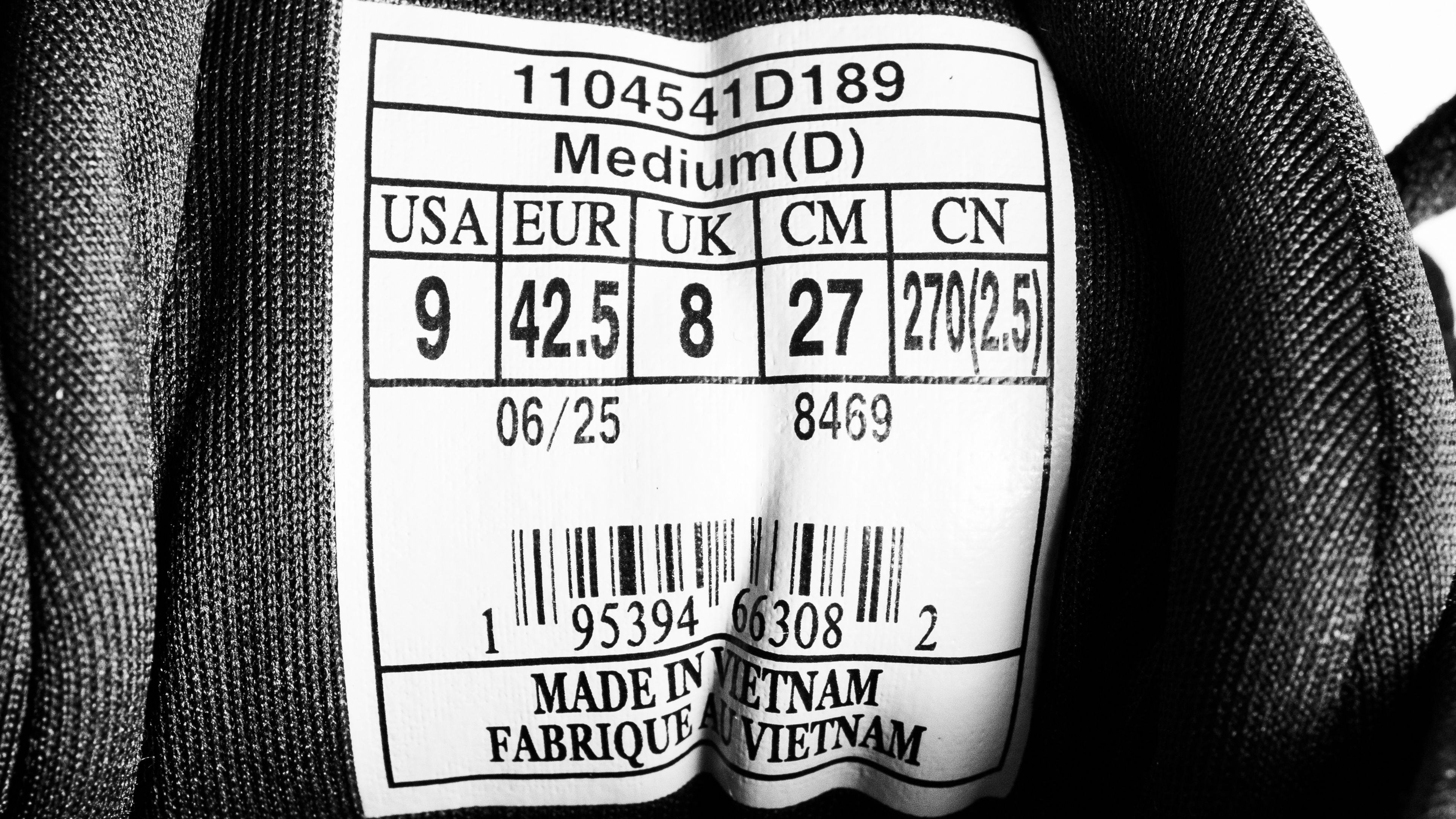 We purchased and tested this shoe in a men's US size 9, as shown here on the label of our pair. The pair shown here is the White/Black/White colorway, and the shoe is available in a variety of other colorways depending on your region. This shoe is available in a variety of widths, ranging from 2A (Women's Narrow), B (Women's Medium) to D (Women's Wide; Men's Medium), 2E (Men's Wide; Women's Extra Wide), and 4E (Men's Extra Wide). The design section applies only to the exact model we tested, but we expect other sizes and gender variants to perform similarly.