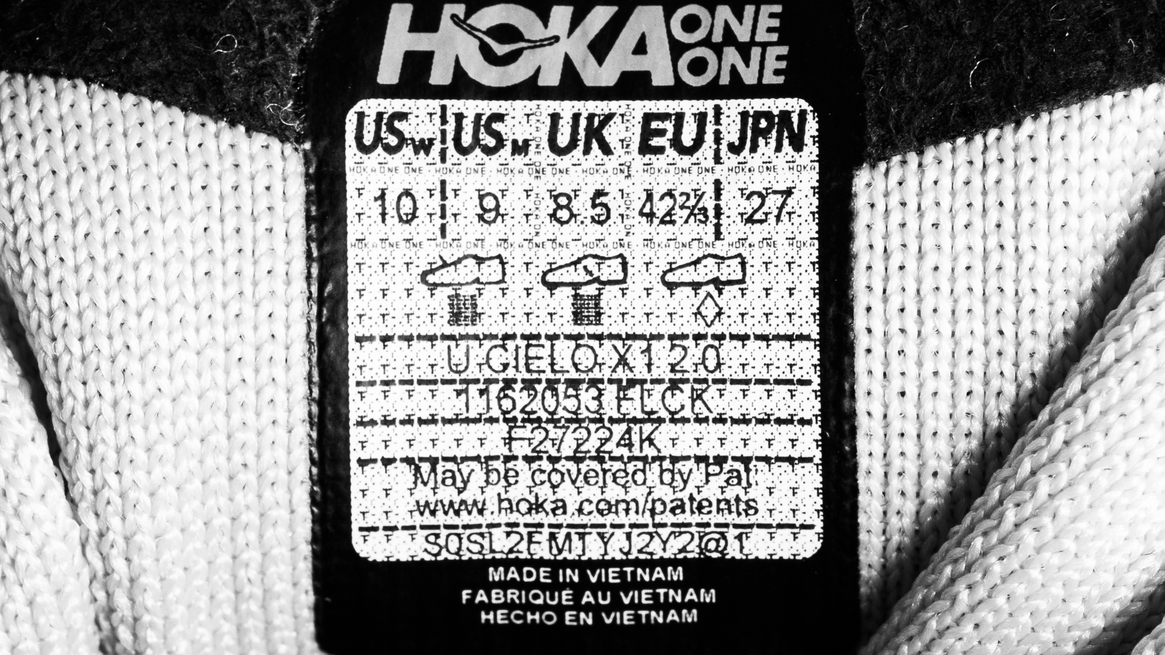 We bought and tested the HOKA Cielo X1 2.0 in men's US size 9, as noted on the label for our pair. The pair we purchased is the Frost/Black colorway, but this shoe is also available in other colors, depending on the region. Additional variants include Skyward Blue/Cielo Blue and Frost/Lava. Unlike some of HOKA's training models, there are no wide or extra-wide versions for this shoe. The design section applies only to the exact pair we tested, but we expect other sizes to perform similarly.