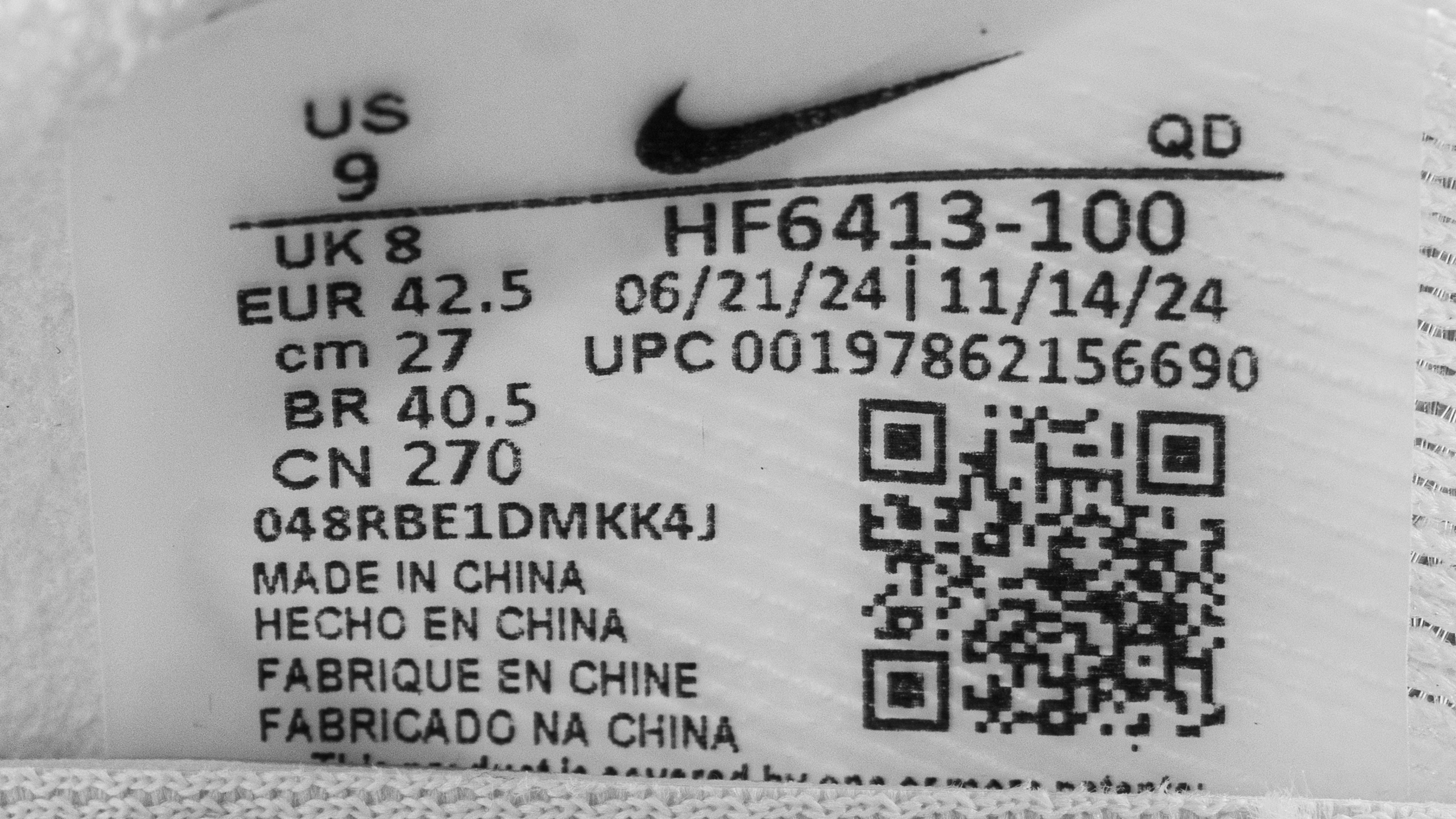 We tested the Nike Vaporfly 4 in men's US size 9, as indicated on the label of our unit. The colorway shown here is Sail/Total Orange/White/Black, first released under the "Proto" label, though it's identical to general release versions aside from color. Additional colorways include Glacier Blue/Blue Tint/Amethyst Tint/Gridiron and Bright Crimson/Mint Foam/Cave Purple/Lime Blast. There's also a Light Trails colorway, inspired by streaks of moving lights, that glows in the dark. Wide versions are not currently available for this model. Most of our review results are valid for all variants, but the design section applies only to the model we tested. We expect other size and gender variants to perform similarly.