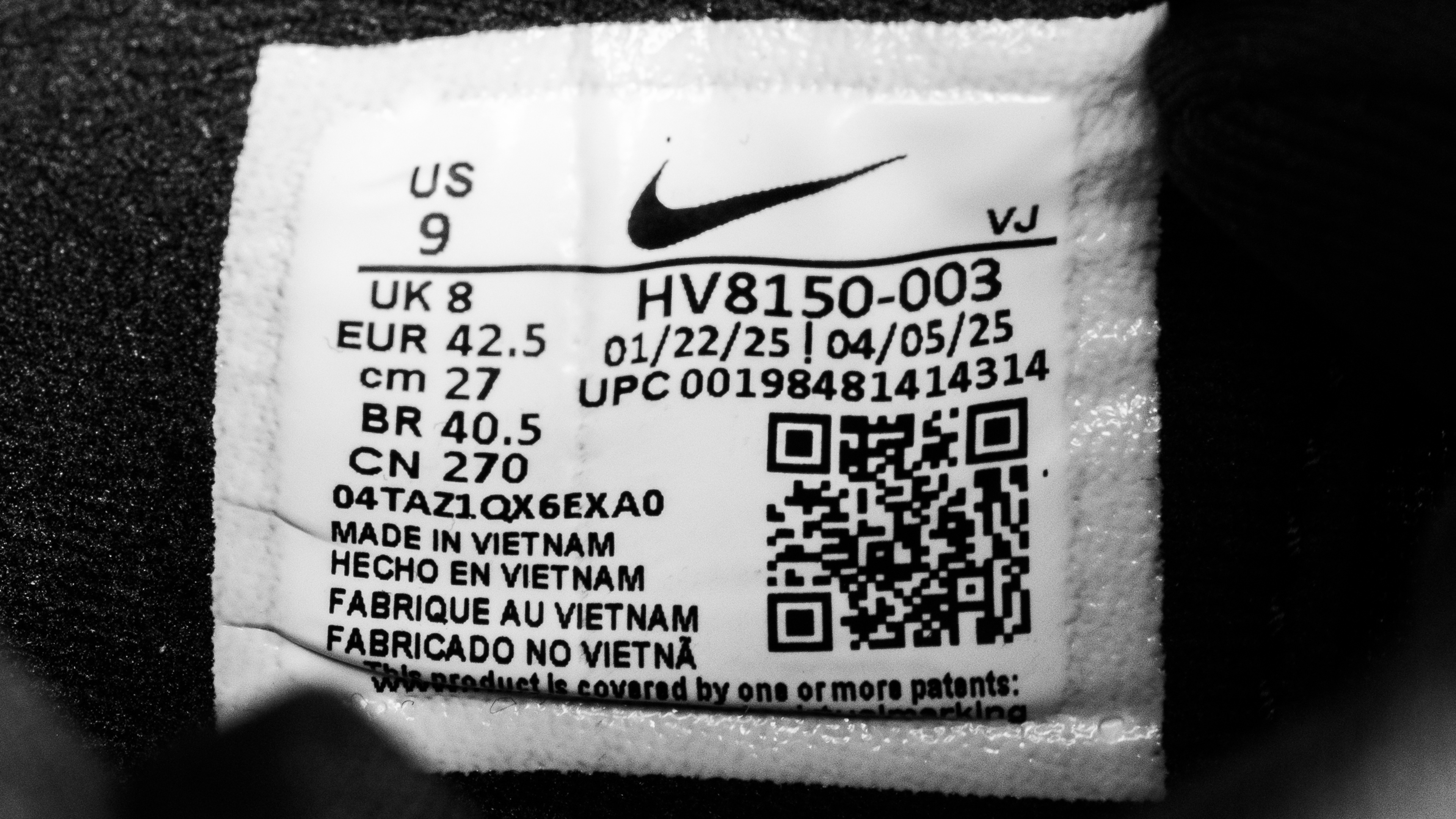 We tested the Nike Vomero Plus in men's US size 9, as indicated on the label for our pair, in the Black/Metallic Dark Grey/Cool Grey/Dark Smoke Grey colorway. The shoe is also available in numerous other colorways, depending on your region. The Vomero Plus is available in regular and extra wide sizes for both men and women. The design section applies only to the exact model we tested, but we expect the other size and gender variants to perform similarly.